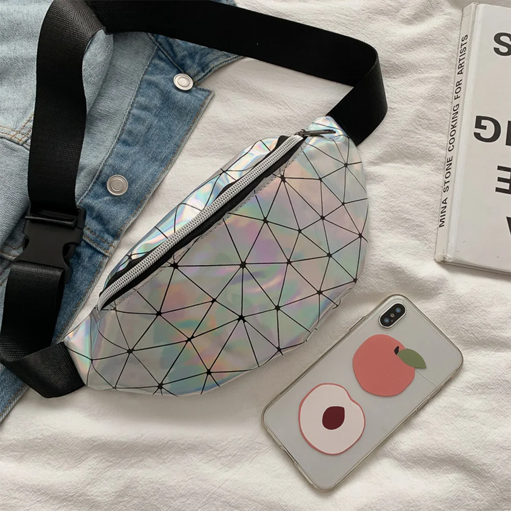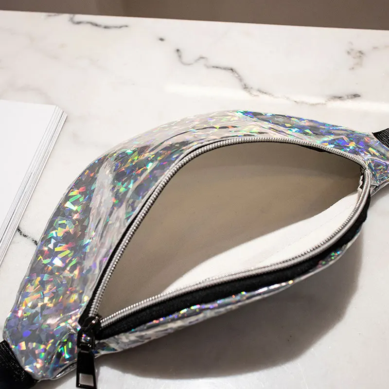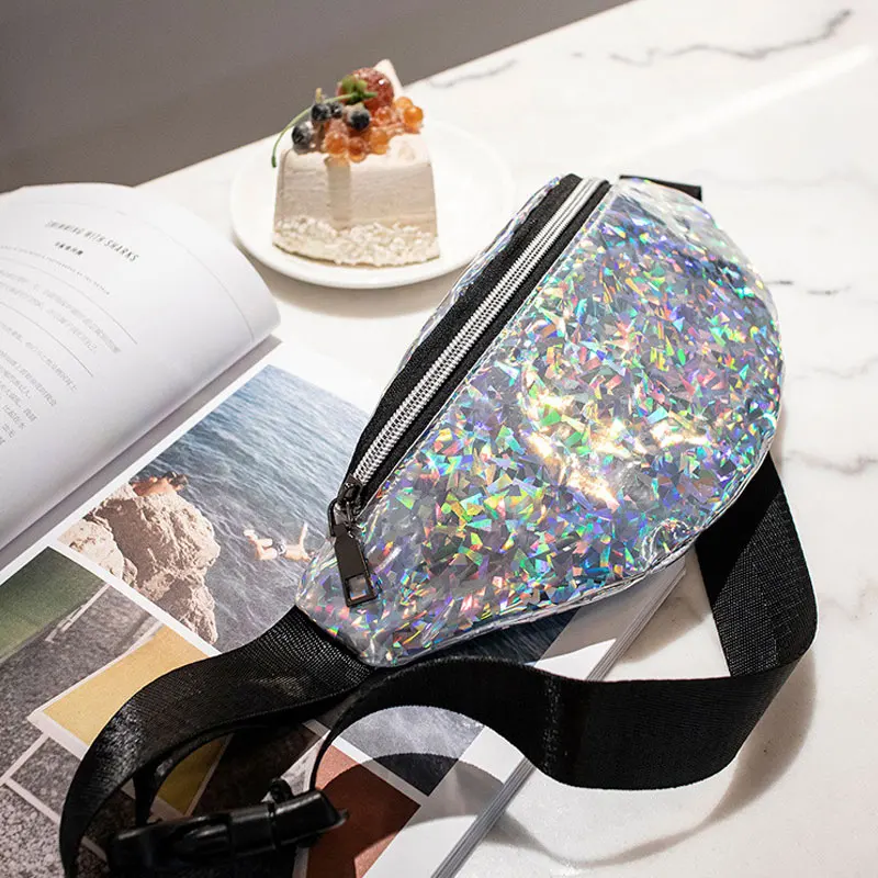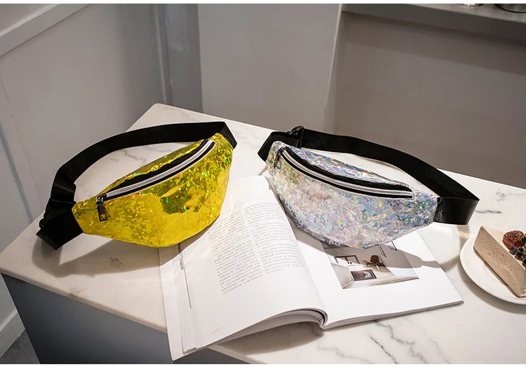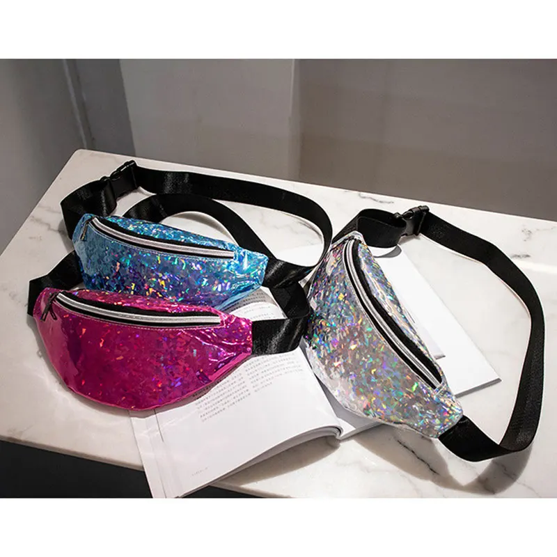 Новейшая Популярная Женская поясная сумка с двусторонними блестками, забавная Сумочка, кошелек на бедро, ранец, лазерная сумка для девушек, нагрудные поясные сумки