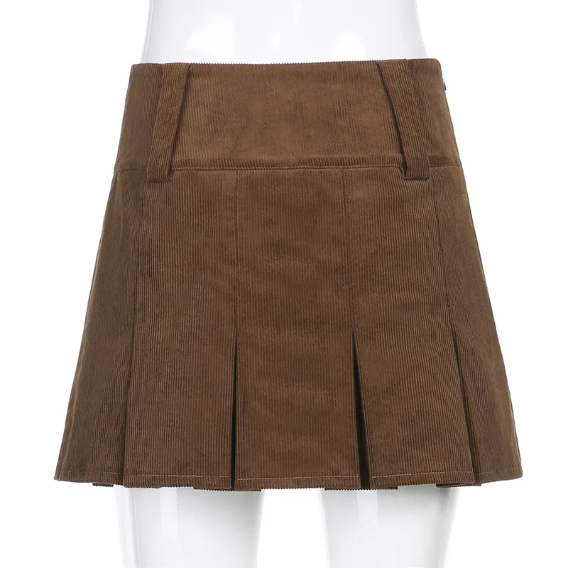 Женские Коричневые Вельветовые плиссированные юбки 90s винтажные Y2K эстетическое школьный мини-юбка для девушек с высокой талией, милые, миленькие в японском стиле (Каваий), короткая одежда