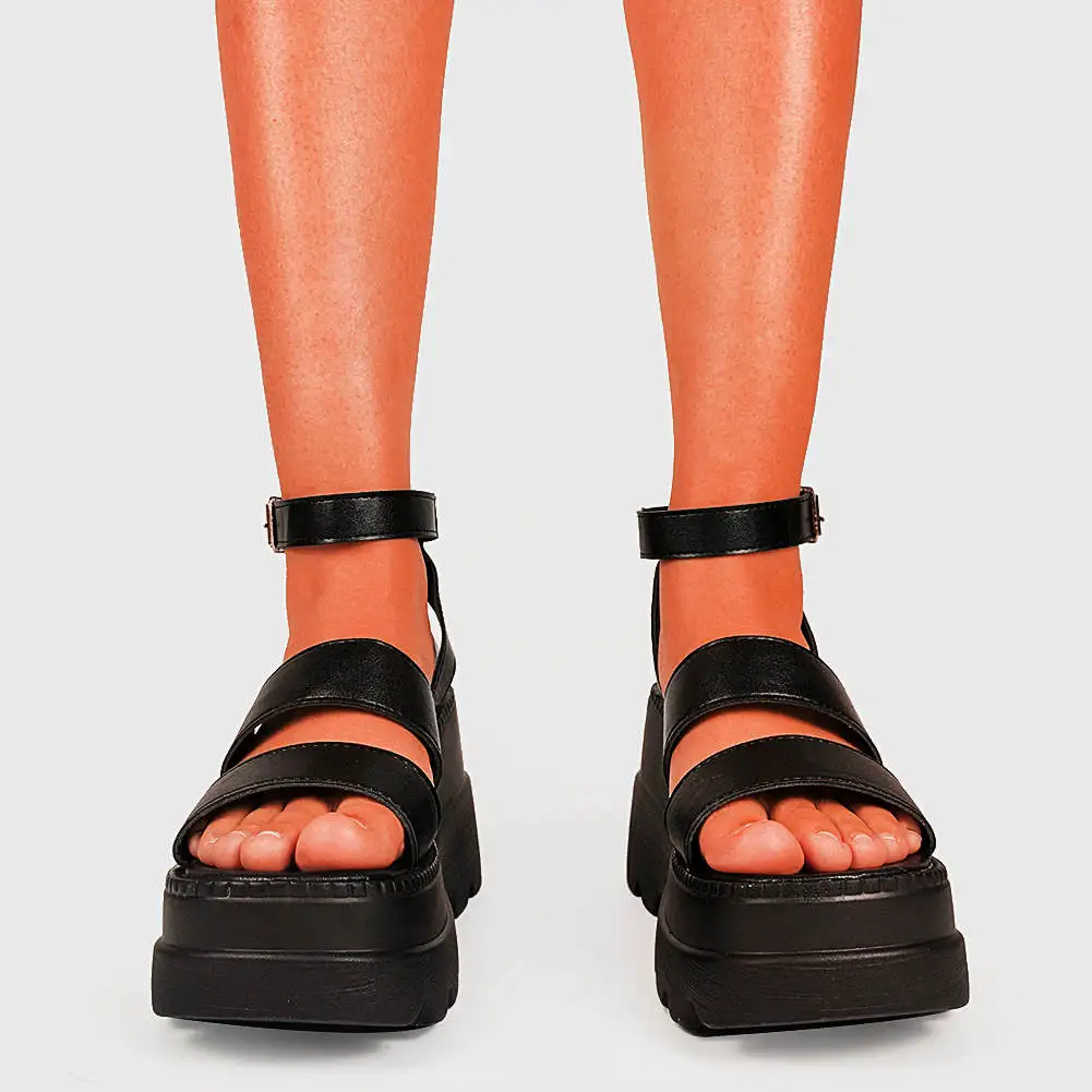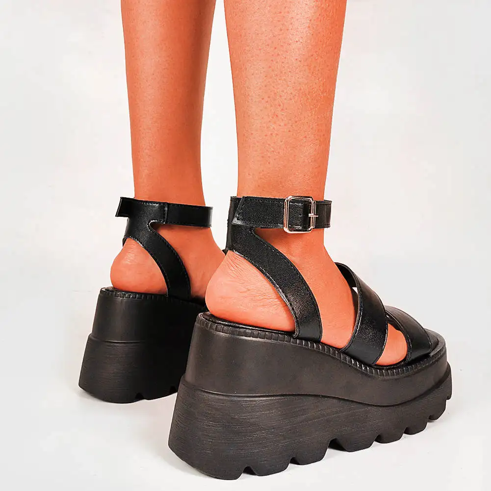 BONJOMARISA INSновые женские летние сандалии на платформе босоножки на высокой танкетке с толстой подошвой Женские брендовые Дизайнерские повседневные туфли с пряжками
