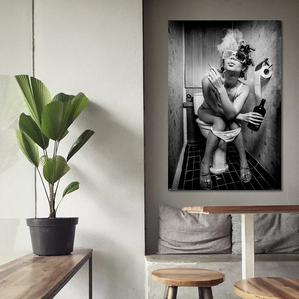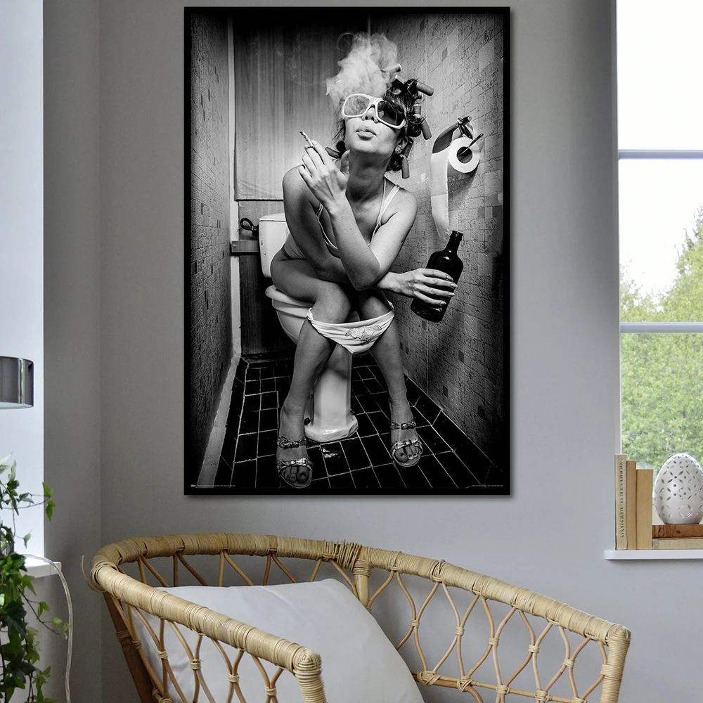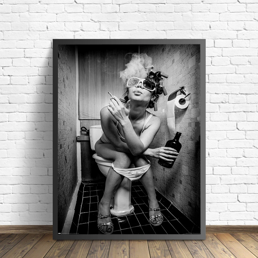 Сексуальная Девушка сидит в туалете холст со скандинавскими мотивами художественные плакаты и принты черно-белые парусиновые туфли настенные картины художественные картины Cuadro