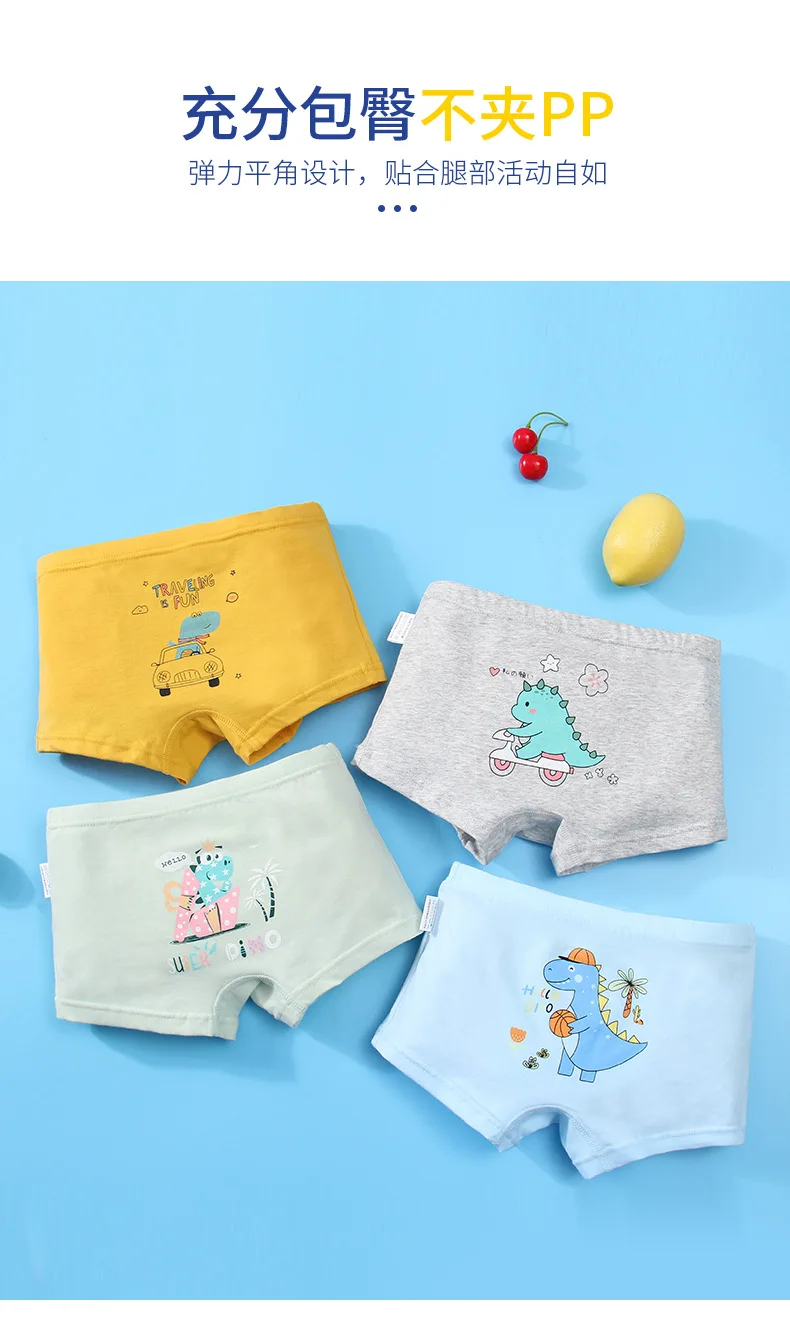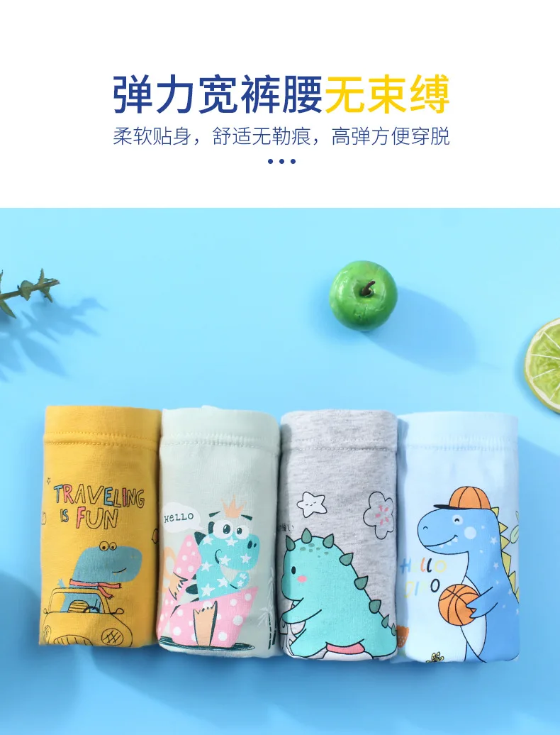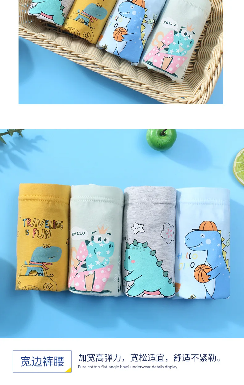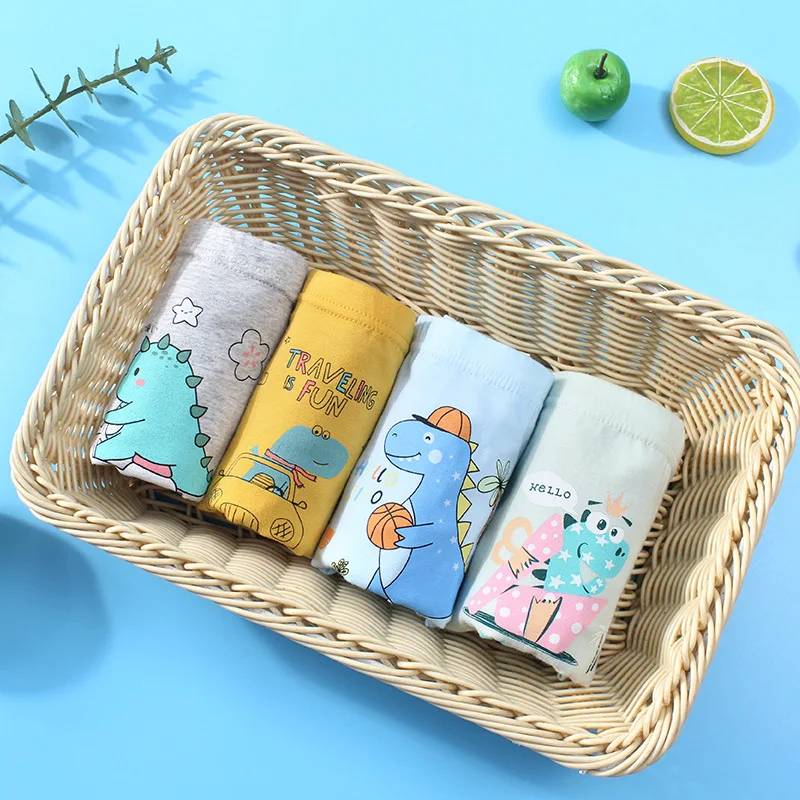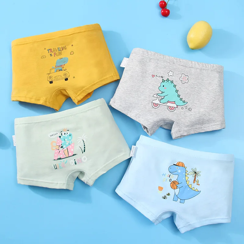 Трусики для мальчиков 3-12 лет, хлопковые, с рисунком динозавра, нижнее белье, шорты, 4 шт.лот