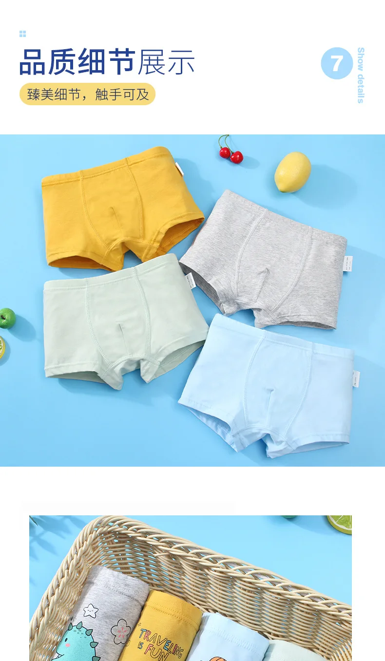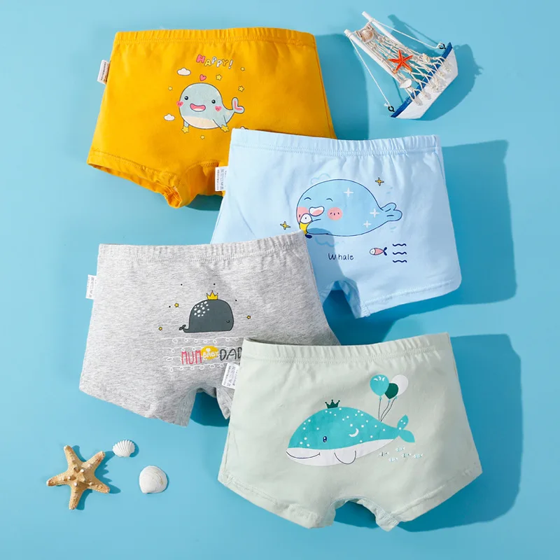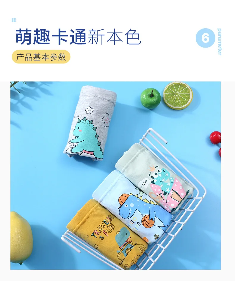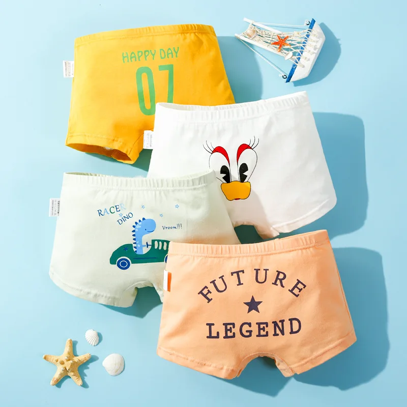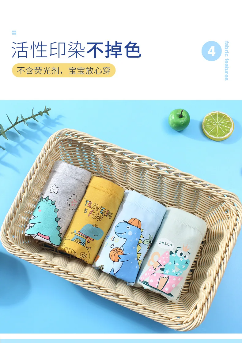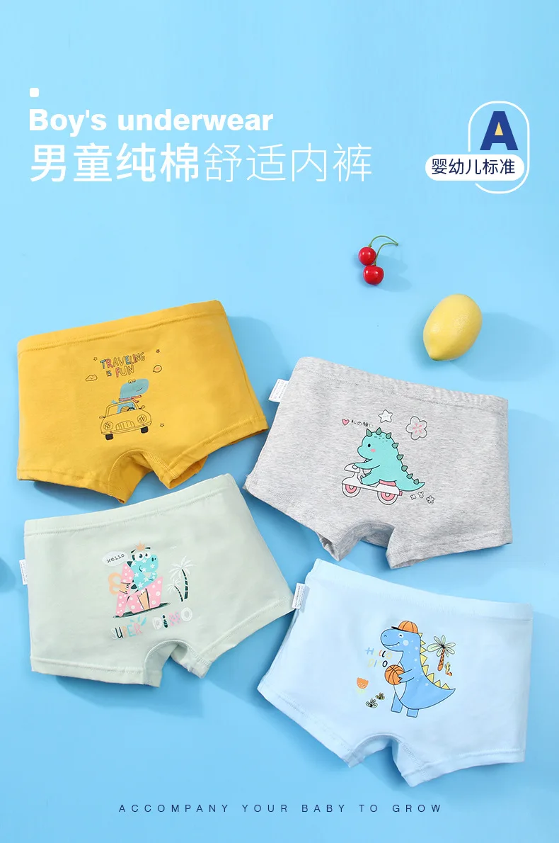 Трусики для мальчиков 3-12 лет, хлопковые, с рисунком динозавра, нижнее белье, шорты, 4 шт.лот