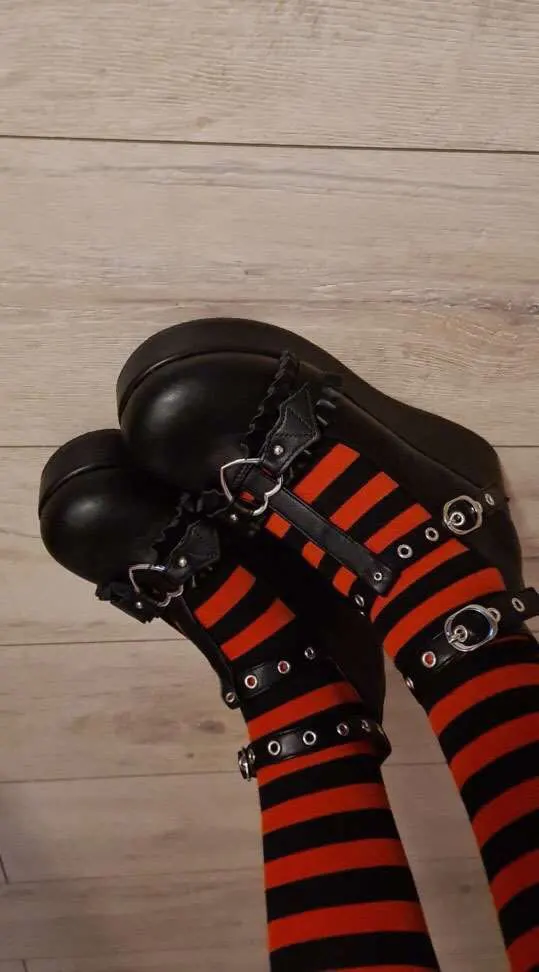 Я прошу продавца заменить черный матовый, он очень красивый, и материал на ощупь крепкий. Удобно носить, а каблуки-просто идеальная высота. Подходит для вашей эстетики в готическом стиле Лолиты. Стоит своих денег