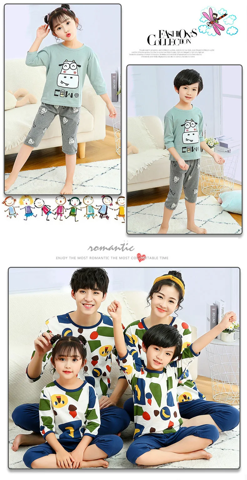 Парные пижамы детские летние Пижамные комплекты одинаковая семейная...