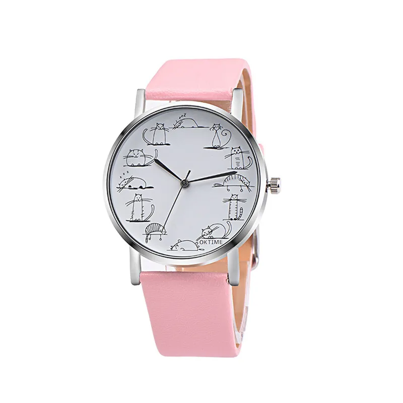 Часы женские часы Relogio Feminino, с мультяшным принтом милого кот...