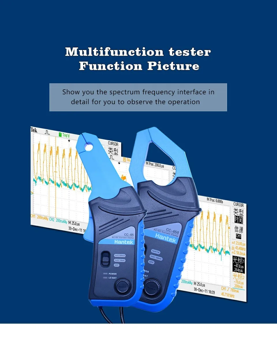 ОсобенностиДиапазон частот переменного/постоянного тока: до 20 кГцДиапазон эффективного измерения: от 20 мА до 65А постоянного токаЭто преобразователь, который позволяет вашему мультиметру измерять текущие данные и позволяет осциллографу измерять текущие формы волны.Его текущий преобразователь состоит из пермаллоя и Холла элемента, который linearly преобразует переменный или постоянный ток в переменный или постоянный ток напряжения. И если подключить к осциллографу с помощью разъема типа BNC, вы можете наблюдать текущие формы сигналов; Если подключить к мультиметру с помощью разъема типа banana, вы можете получить текущие данные.