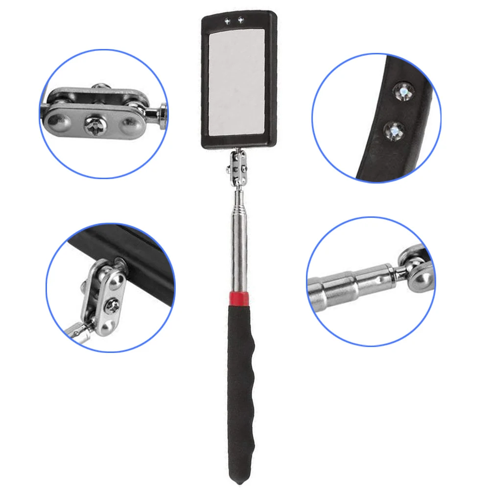 Телескопическое зеркало для проверки внутренней стены со светодиодной подсветкой, двойное шаровое соединение, вращение на 360 градусов, инструмент для обнаружения ремонта автомобиля