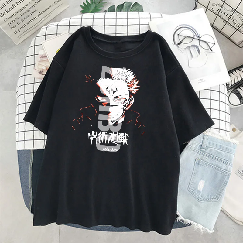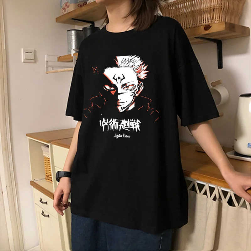 Футболка женская с коротким рукавом, винтажная Свободная рубашка в стиле аниме, уличная одежда в стиле Харадзюку, кайсен, годзё, Сатору, с принтом, в стиле Харадзюку