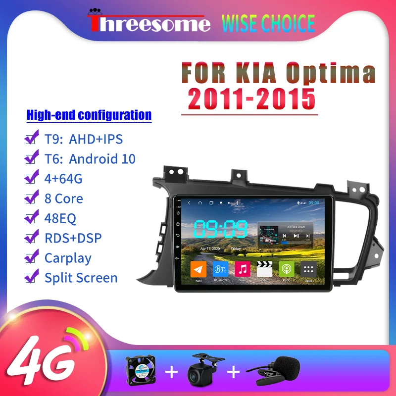 Автомобильный мультимедийный плеер, стерео-система на Android 10, с 9 "экраном, GPS, Wi-Fi, FMAM, для Kia K5 Optima 2011-2015, DSP RDS, 4 Гб + 64 ГБ