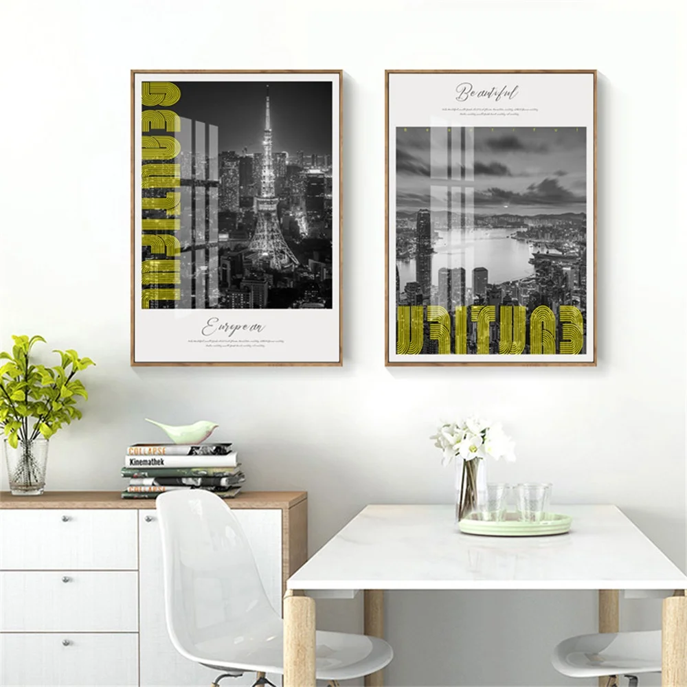 Пейзаж Парижа, башня, Гонконг, Виктория, гавань, Чикаго, плакаты, принты, черно-белая настенная живопись, эстетический Декор для дома