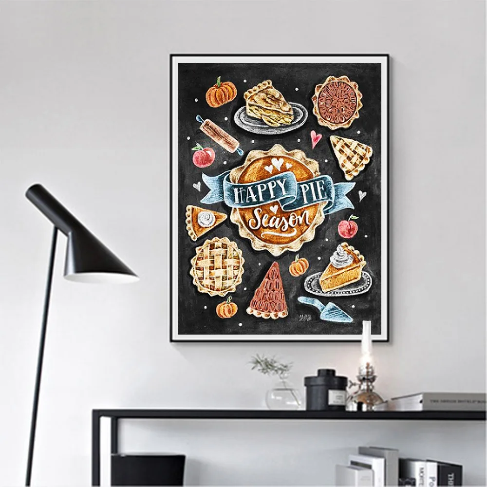 Торт на День Благодарения тыквенный пирог Алмазная картина Круглая Полная дрель DIY мозаика 5D Вышивка крестиком Мел Blackboard Word