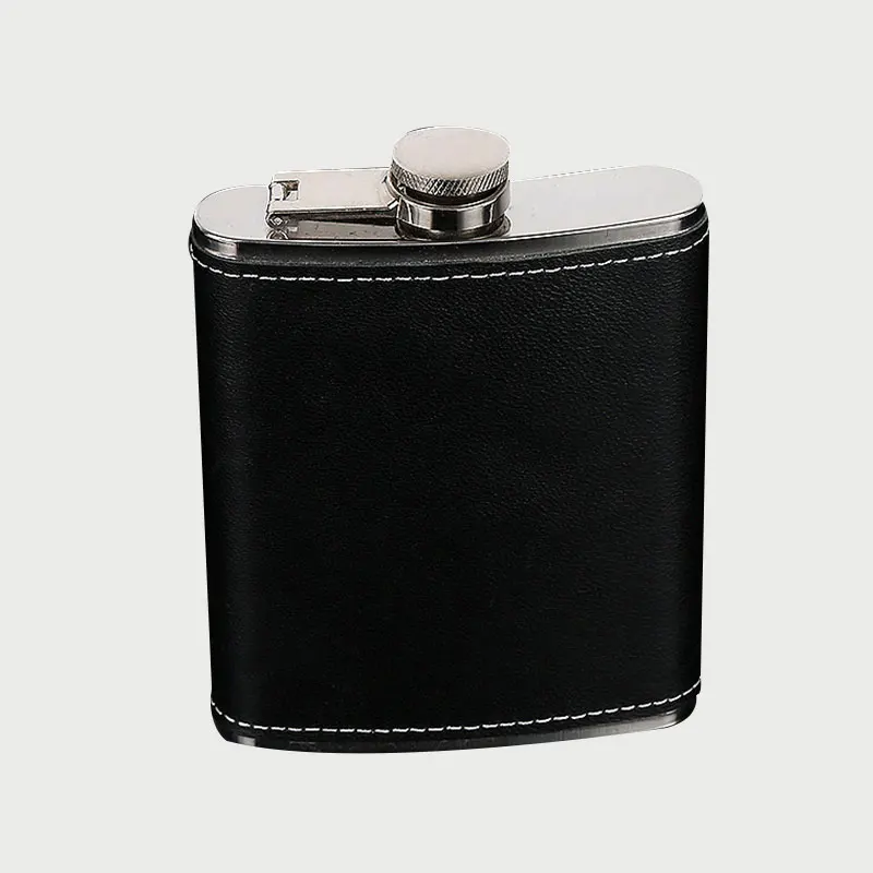 Фляжка из нержавеющей стали для виски, 56789 унций, с кожаным держателем