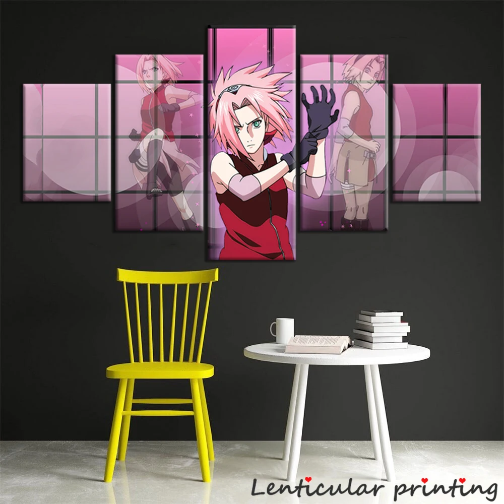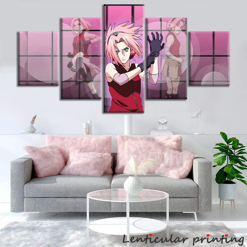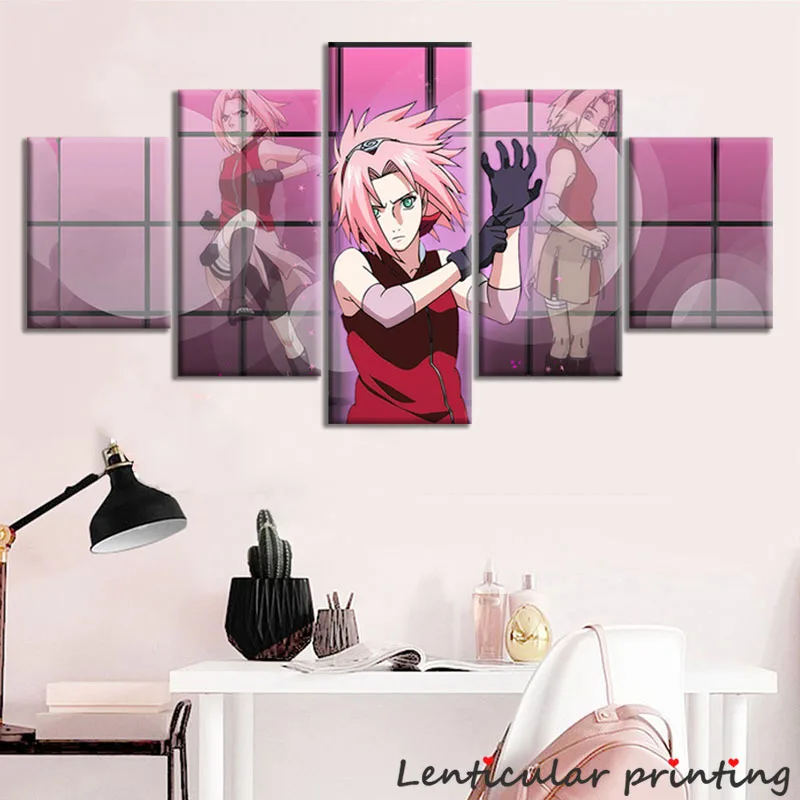 5 панелей аниме плакат Харуно Сакура картина напечатанная маслом холст Девушка Спальня украшение манга настенное искусство