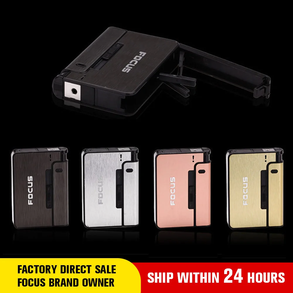 FOCUS портативные металлические портсигары комплект с газовой зажигалкой 10 шт. 84 мм держатель сигареты чехол Зажигалка гаджет для мужчин Новогодний подарок