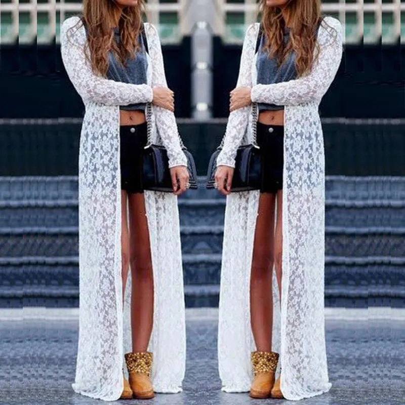 Женский цветочный кружевной пляжный длинный кардиган, повседневный ...
