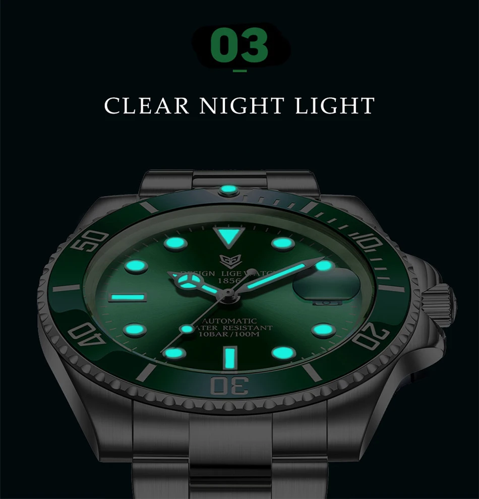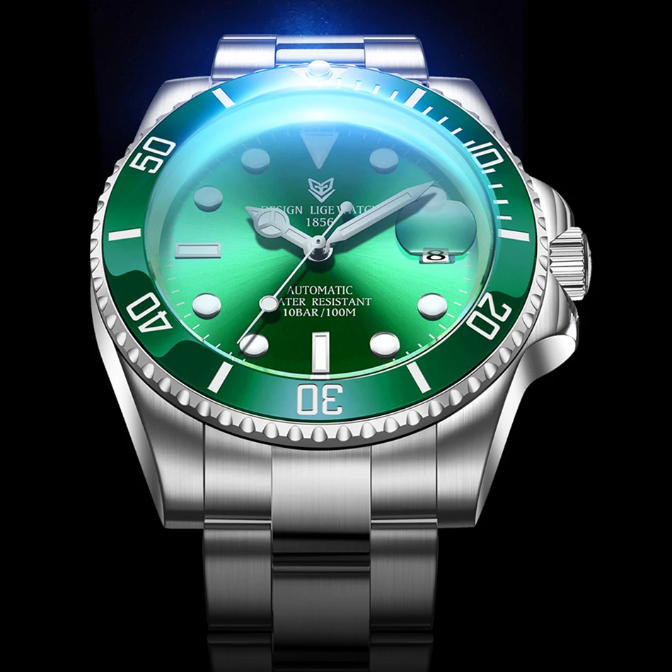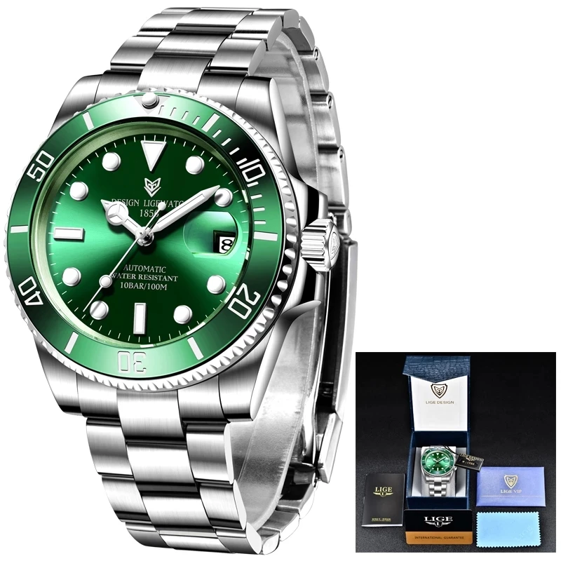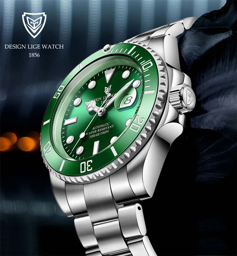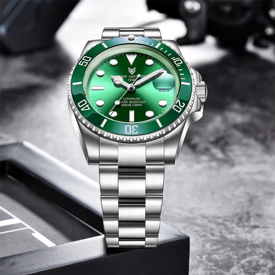 Часы наручные LIGE Мужские механические, брендовые автоматические Модные деловые водонепроницаемые из нержавеющей стали 316L с сапфировым стеклом и механизмом NH35