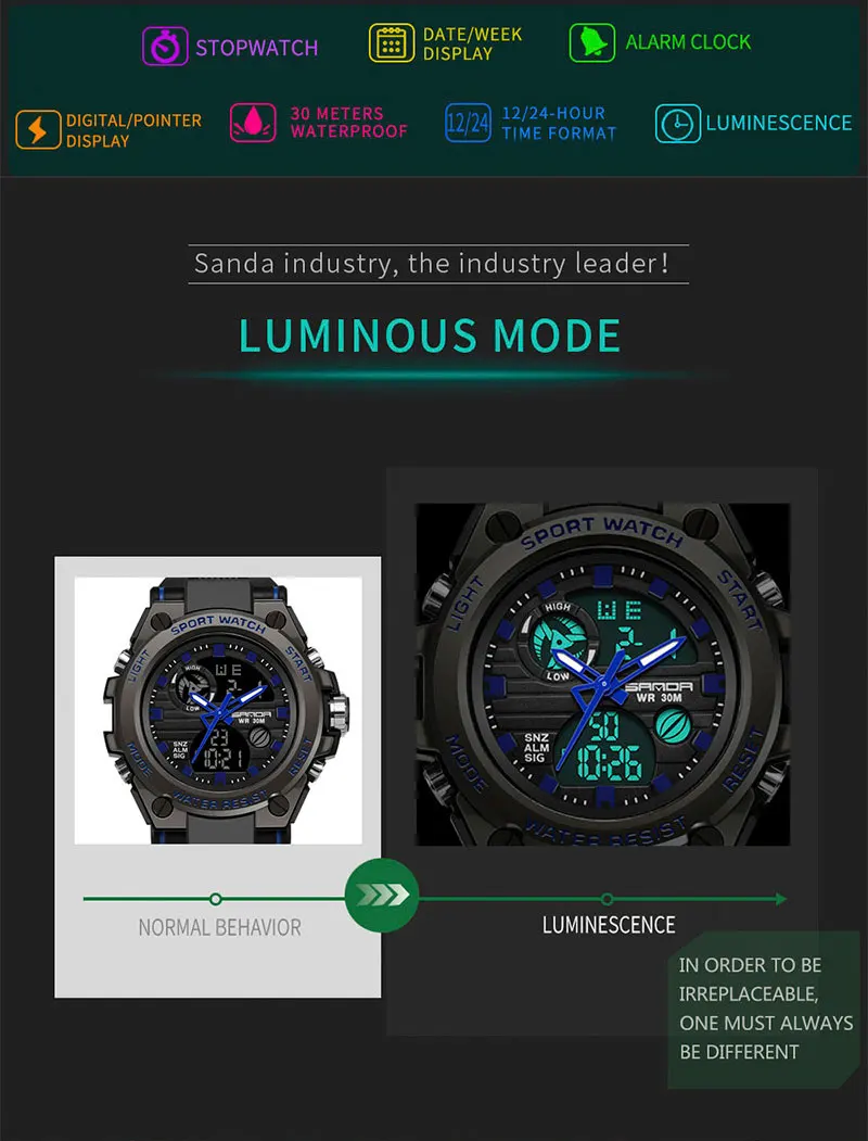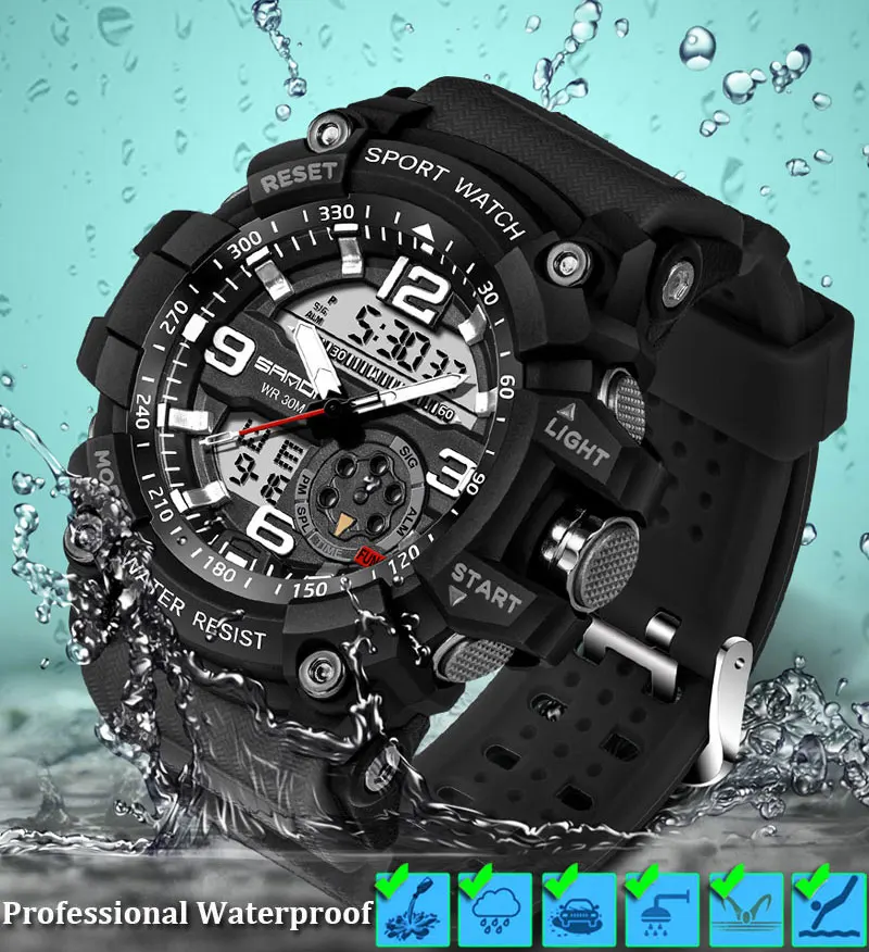 Часы мужские SANDA, спортивные, водонепроницаемые, с двойным дисплеем