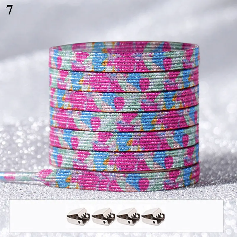 Эластичные шнурки с фиксацией 100 см, быстрые кроссовки, плоские шнурки без завязывания, яркие блестящие шнурки для детской и взрослой обуви