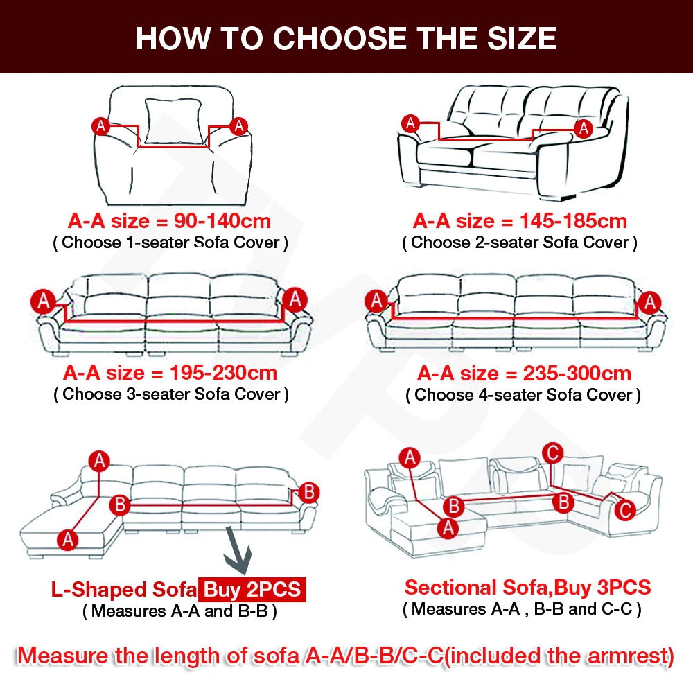 1 местный диван Размер крышки = 90-140 см2-местный диван крышка размер = 145-185 см3-местный диван крышка размер = 190-230 см4-местный диван-кровать крышка размер = 235-300 смПрименимый диван: безрукий диван, подлокотник диван, l-образный диван, секционный диван.(Каждая часть вашего дивана должна купить 1 шт., пожалуйста, выберите количество и подходящий размер в качестве измерительного руководства)