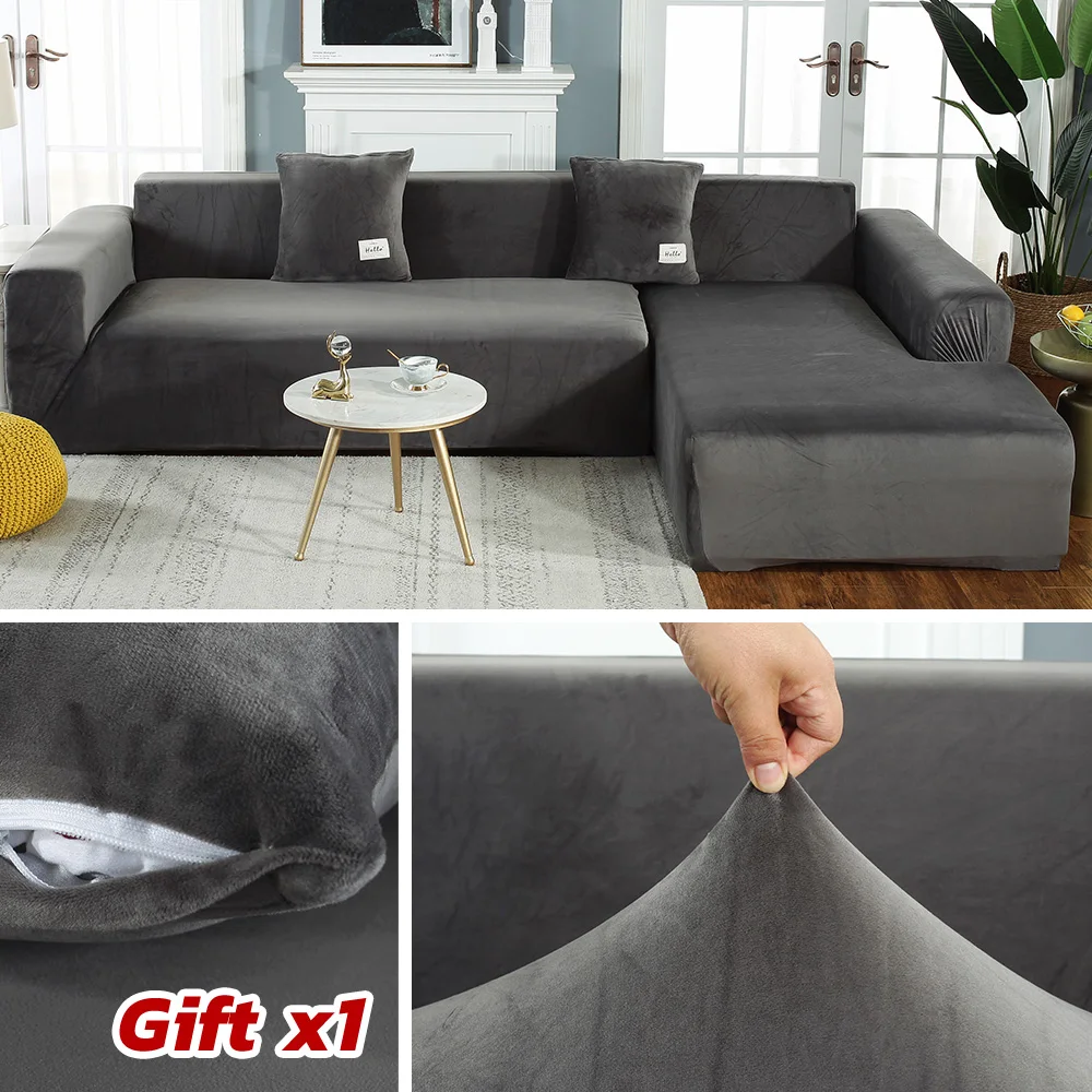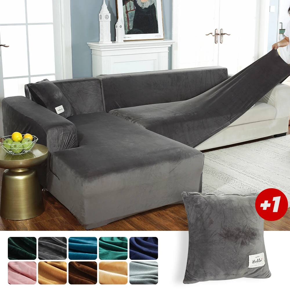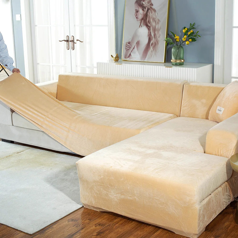 Бархатный эластичный чехол для дивана в гостиную, чехол для углов, толстые плюшевые мягкие чехлы для дивана, эластичный универсальный чехол на 1234 места
