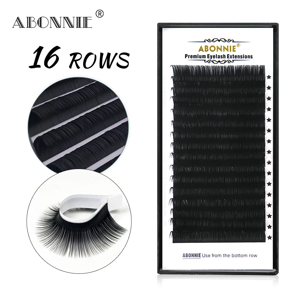 Накладные ресницы Abonnie 16 рядов, кашемировые матовые для наращивания, Премиум качество
