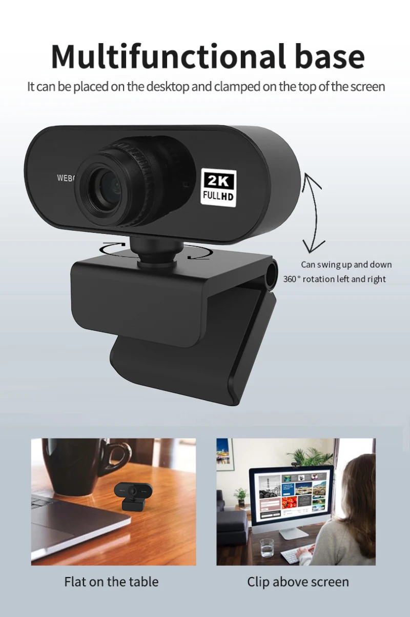Веб-камера с фиксированным фокусом 2K HD, высококлассная со встроенным микрофоном, для видеозвонков, ПК, ноутбука, компьютера