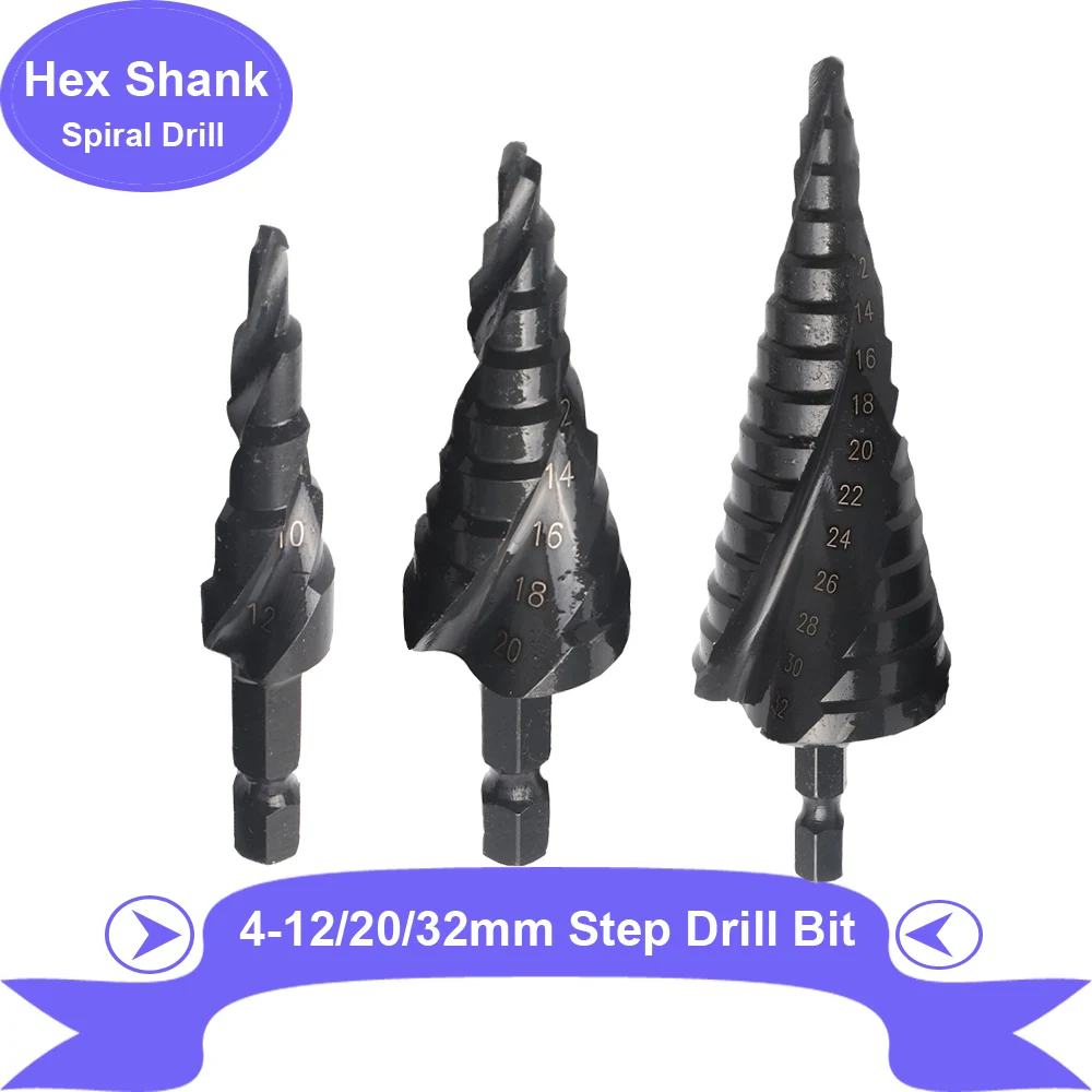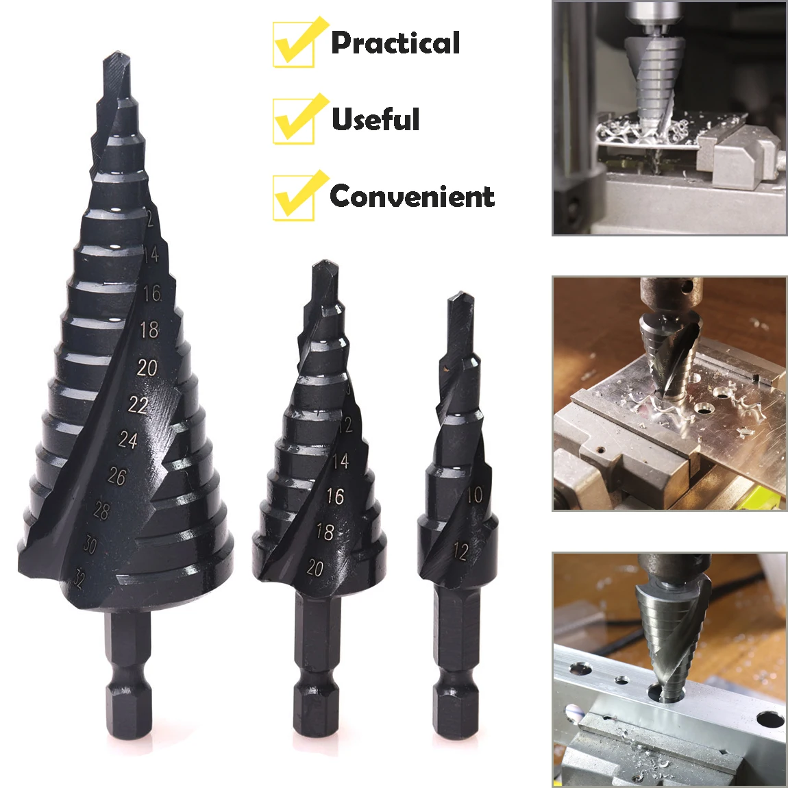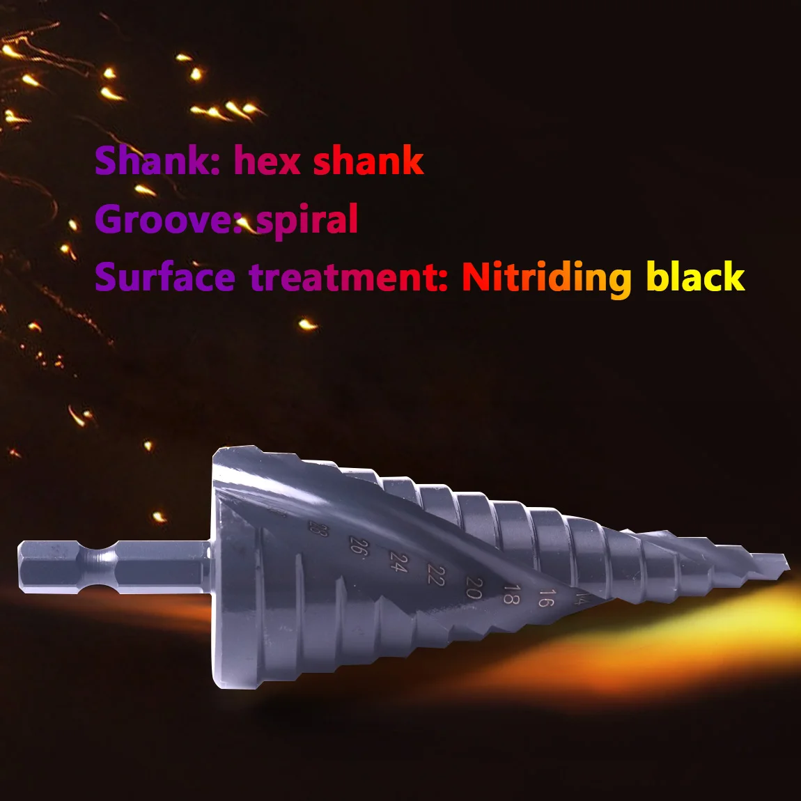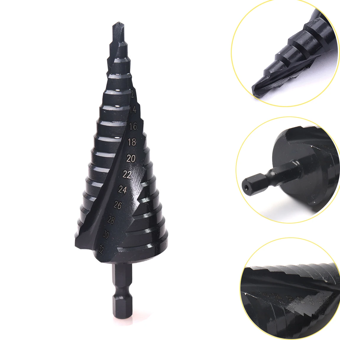 Ступенчатое сверло, нитридное покрытие из быстрорежущей стали 4-124-204-32 мм, спиральные канавки для работ по дереву, металлу