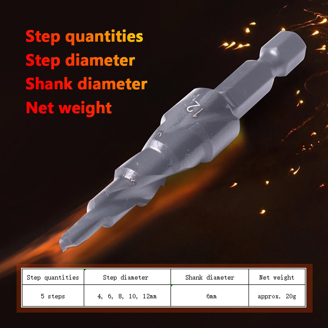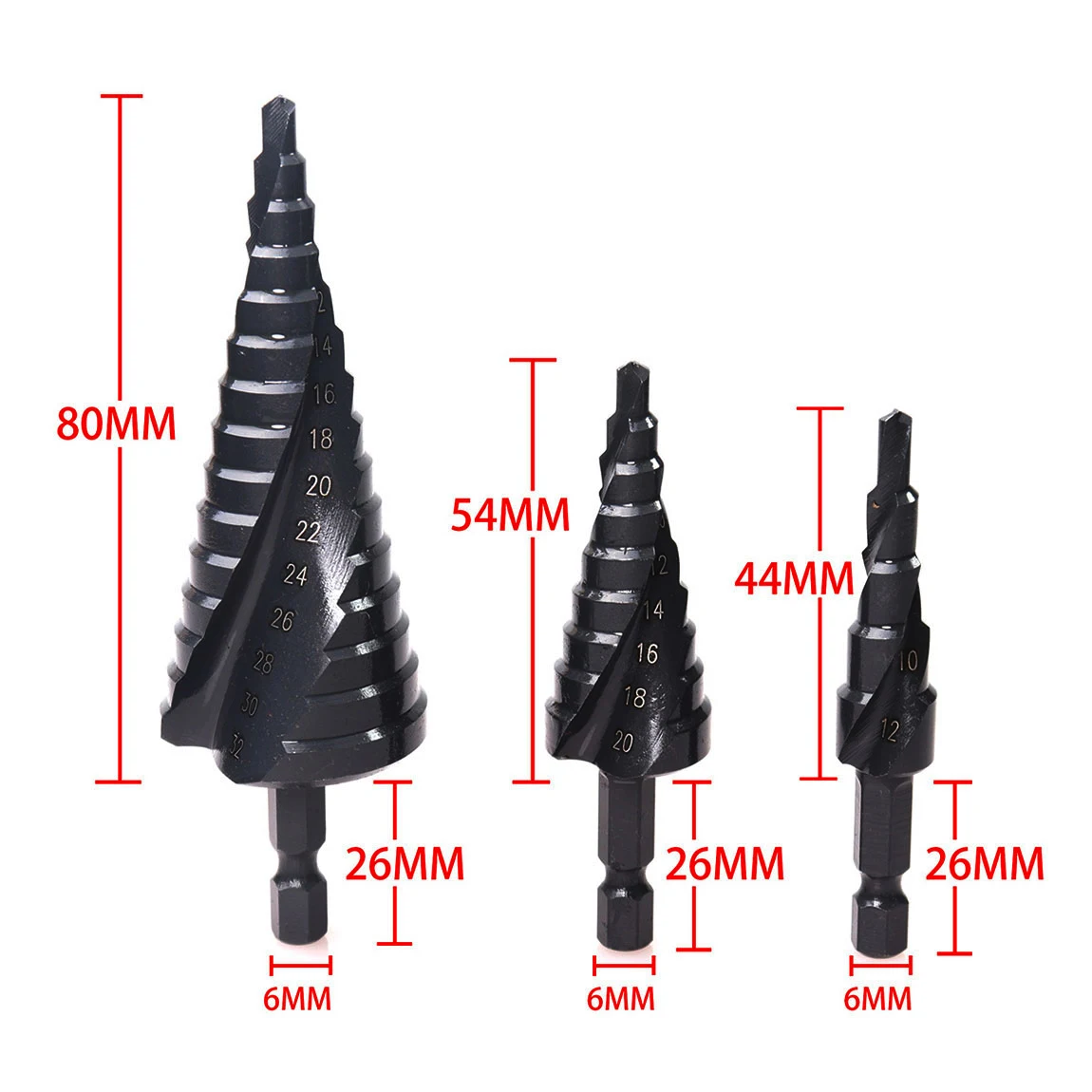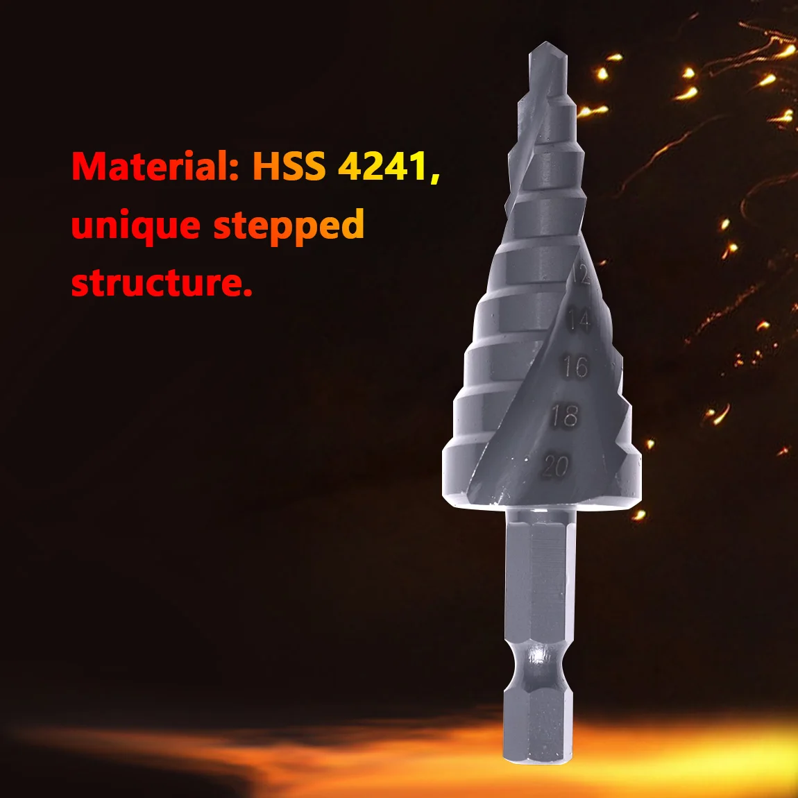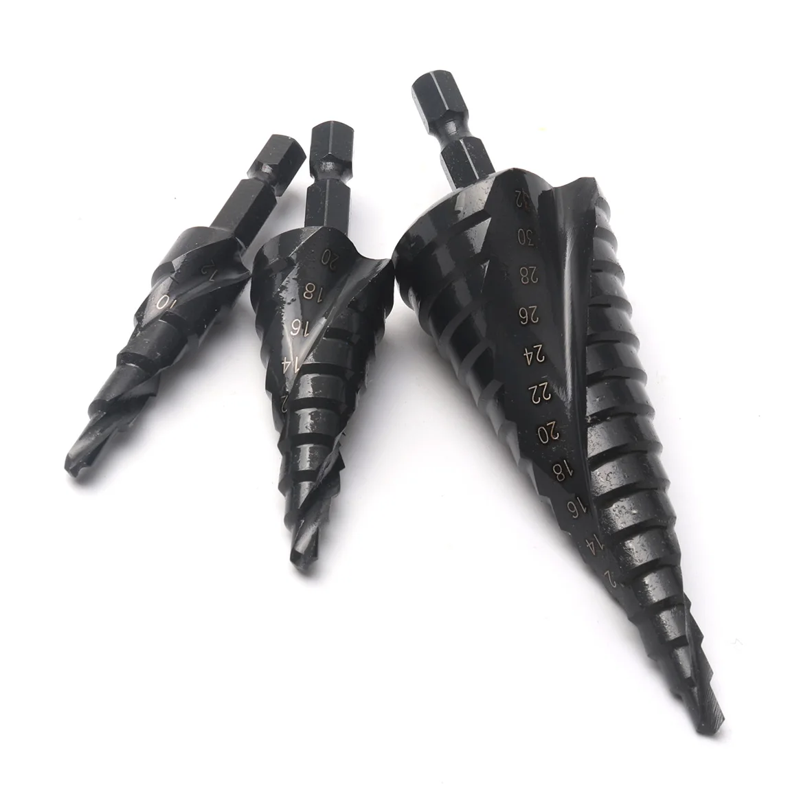 Ступенчатое сверло, нитридное покрытие из быстрорежущей стали 4-124-204-32 мм, спиральные канавки для работ по дереву, металлу