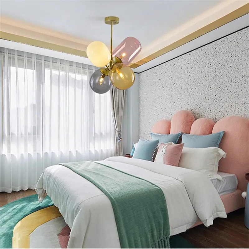 Скандинавская Подвесная лампа, цветной стеклянный воздушный шар, светодиодное милое украшение для спальни, столовой, детской потолочный светильник