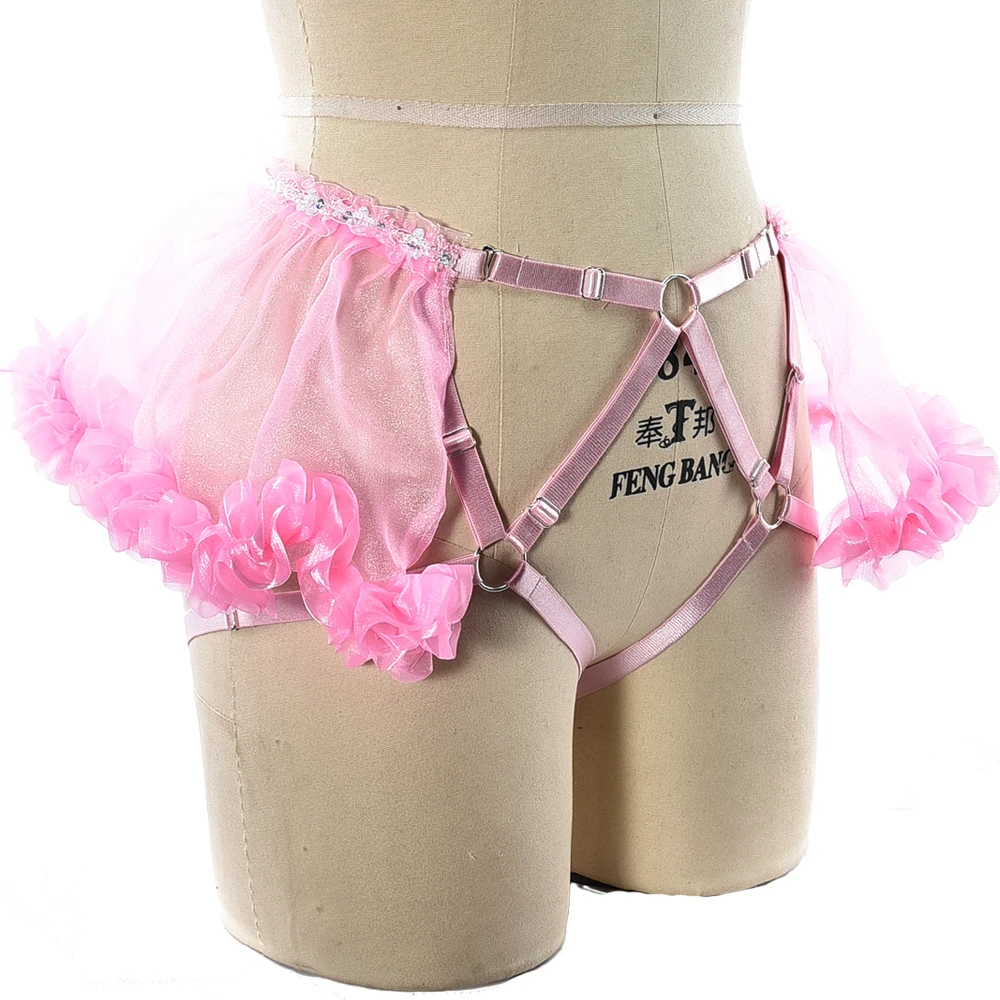Женское нижнее белье, розовые ажурные стринги из марлевой ткани, сексуальное нижнее белье, готический организм клетка, праздничный бандаж, пояс для тела