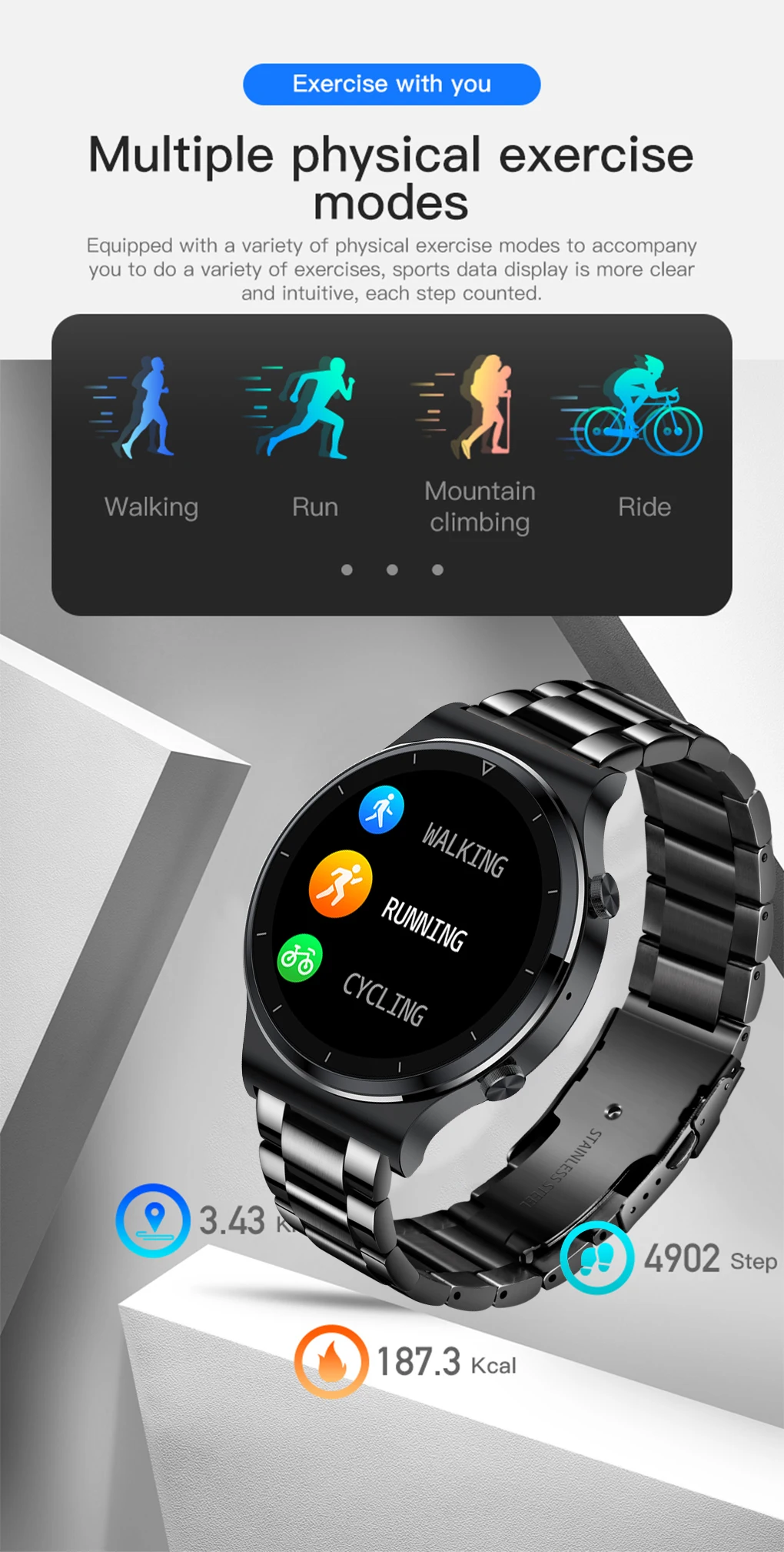 Смарт-часы мужские, водонепроницаемые, со стальным браслетом и корп...
