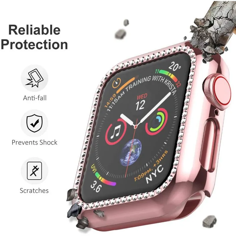 Роскошный чехол для часов с бриллиантами для Apple Watch 44 мм 42 мм 40 мм аксессуары защитный чехол для IWatch Series 6 Se 5 4 3 2 1 защита