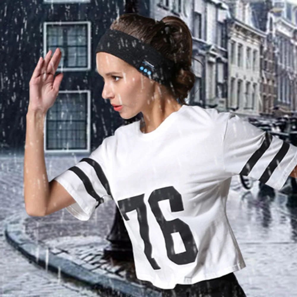 Bluetooth-совместимая музыкальная головная повязка, головной убор для йоги, бега, дышащий вязаный головной убор, наушники, гарнитура с динамиком, шапка, совместимая с Bluetooth