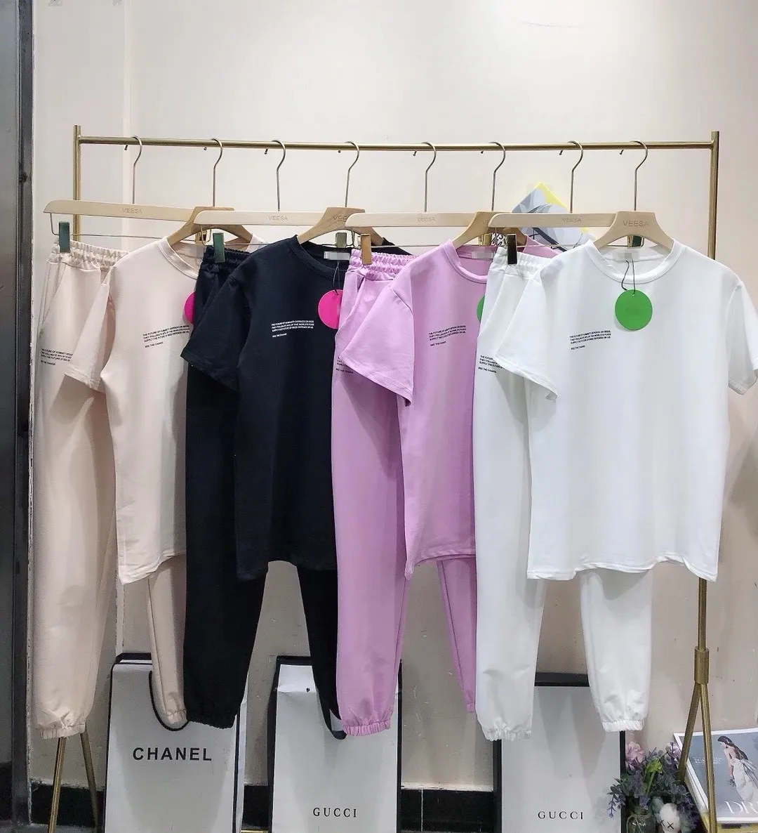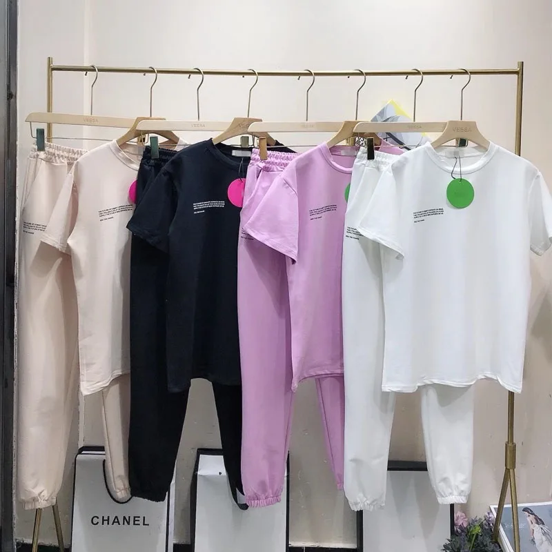 Женский костюм ALPHALMODA, футболка с коротким рукавом и надписью и штаны для бега, 2 шт., на весну 2021