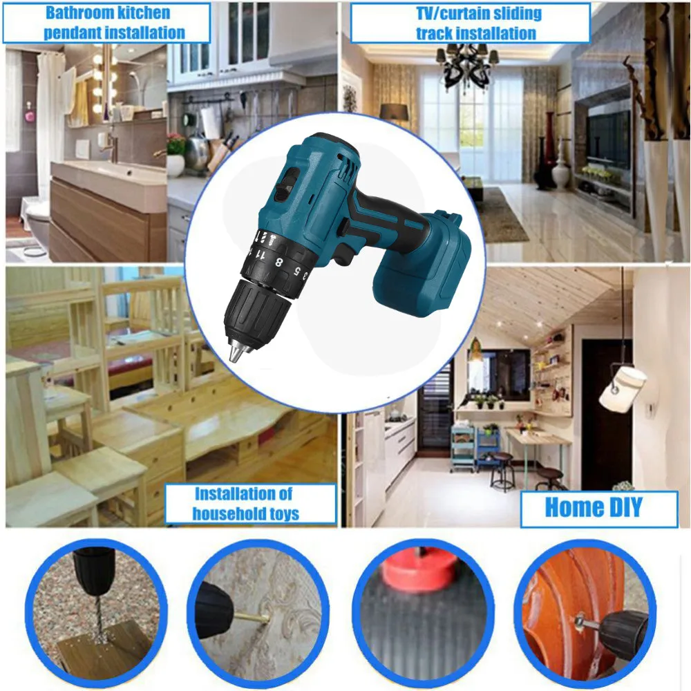 BLMIATKO 18 в 3 в 1 бесщеточная ударная электрическая дрель 13 мм 90 нм 2 скорости перезаряжаемая отвертка электроинструменты для батареи Makita