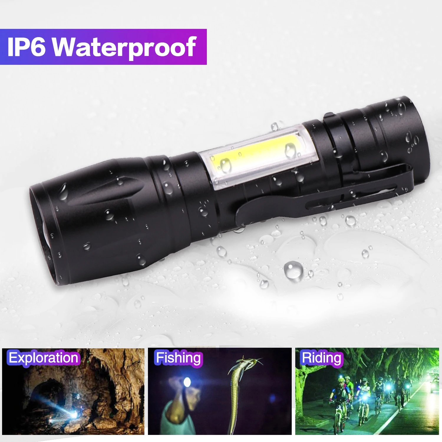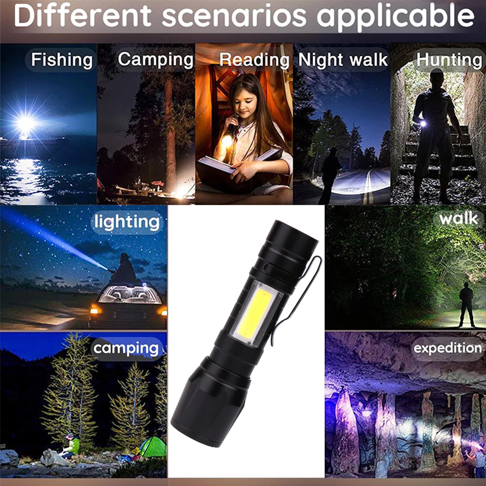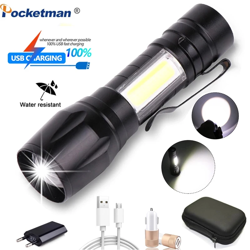 Суперъяркий светодиодный фонарик с зарядкой от USB, масштабируемый Мощный водонепроницаемый фонарь онарик, фонарик для кемпинга, светодиодный фонарик COB