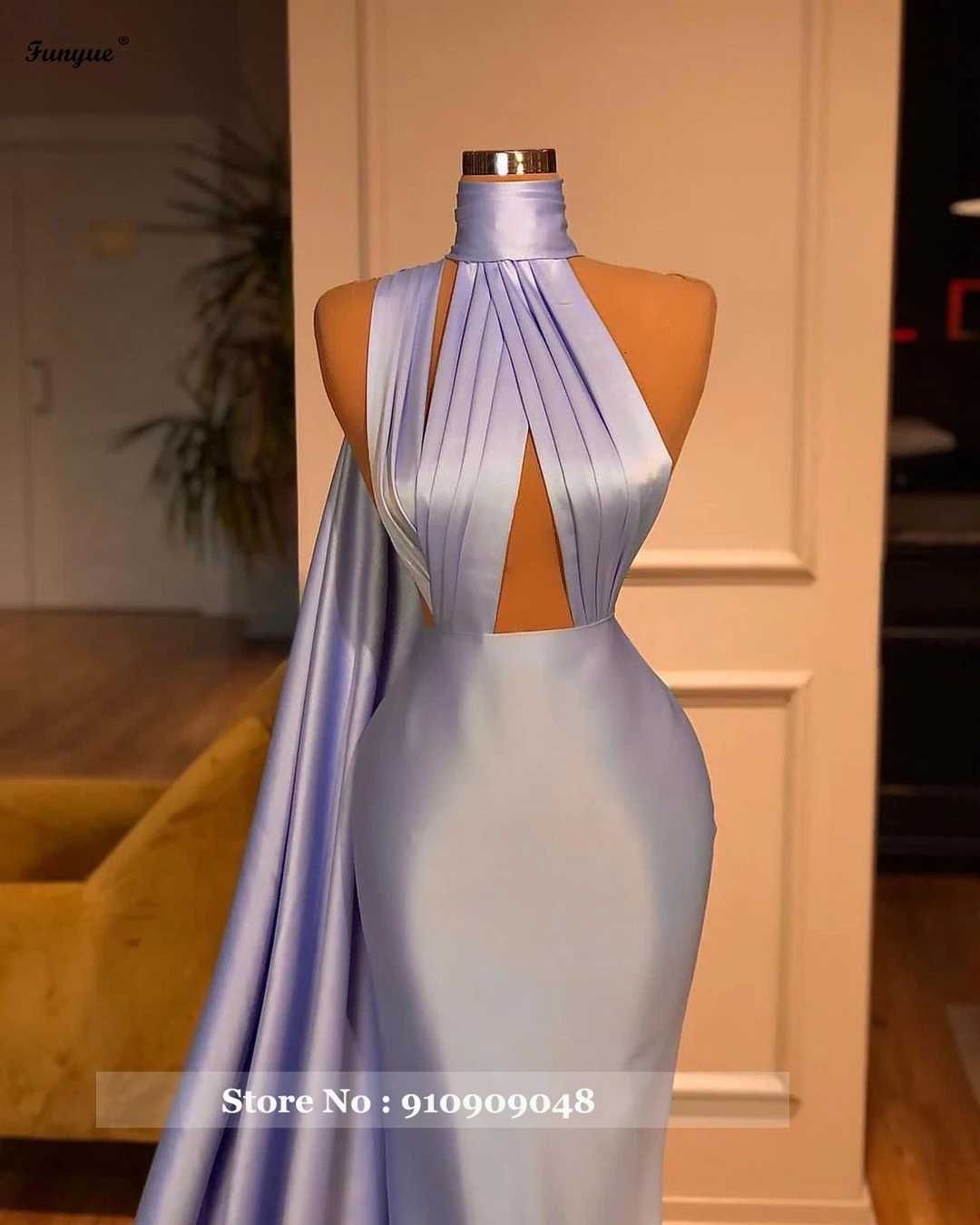 Женское атласное платье-Русалка Funyue, синее плиссированное платье...
