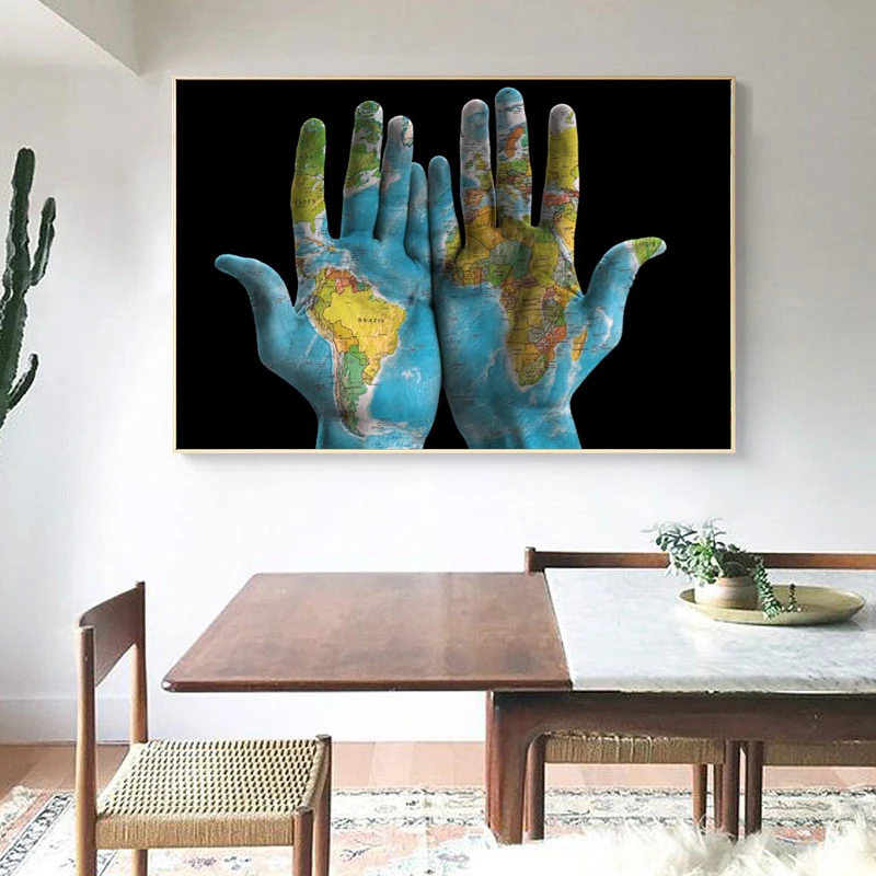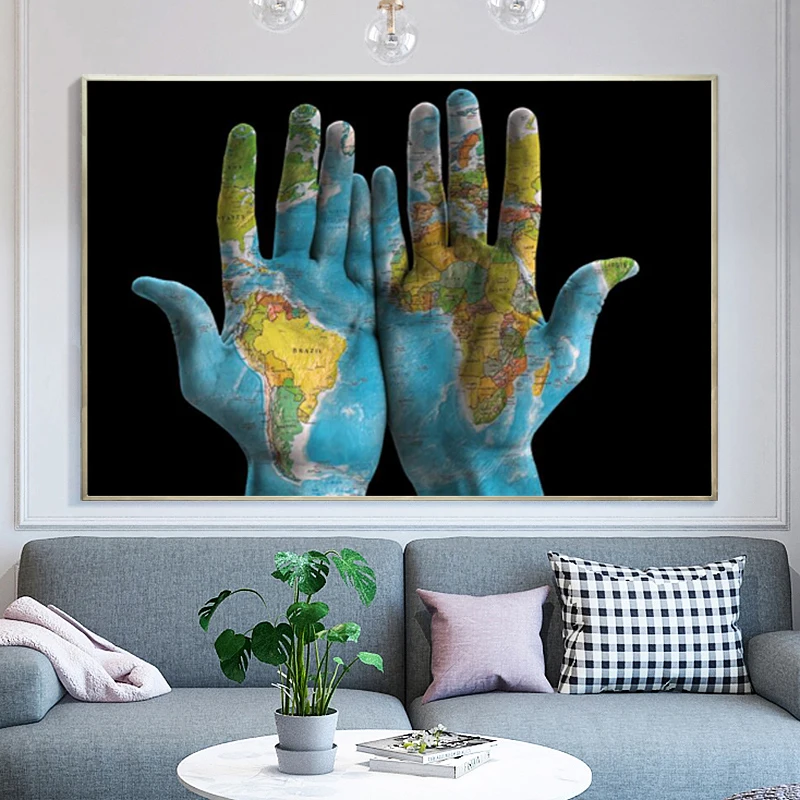 Креативная карта мира на руках, плакаты и принты, настенная живопись на холсте, картины для гостиной, домашний декор (без рамки)