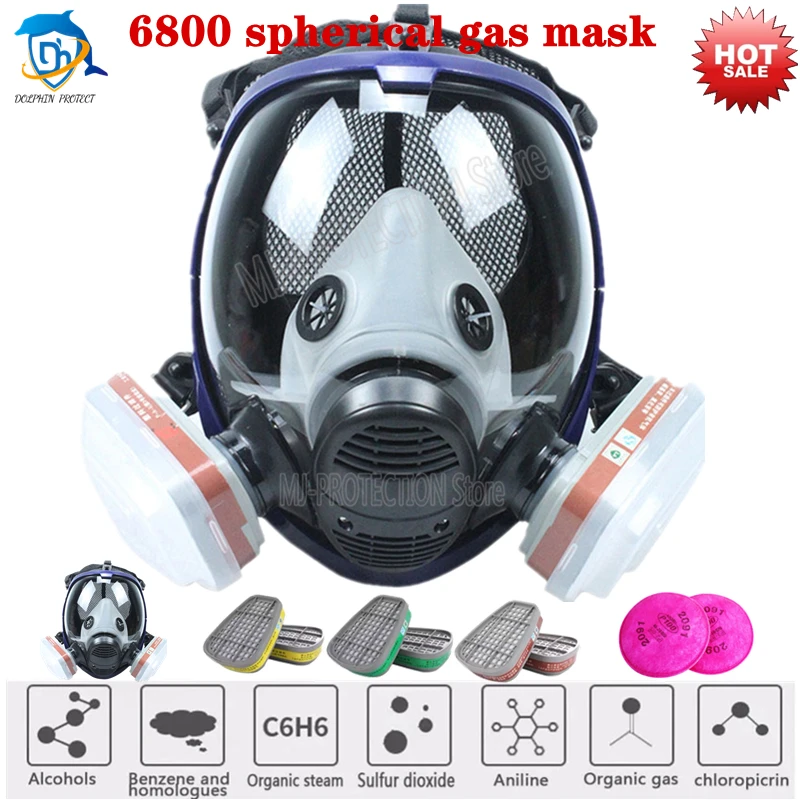 Полнолицевая маска для краски 6800, респиратор, химическая маска с картриджем с углеродным фильтром, полная защита, спрей, сварка, промышленность