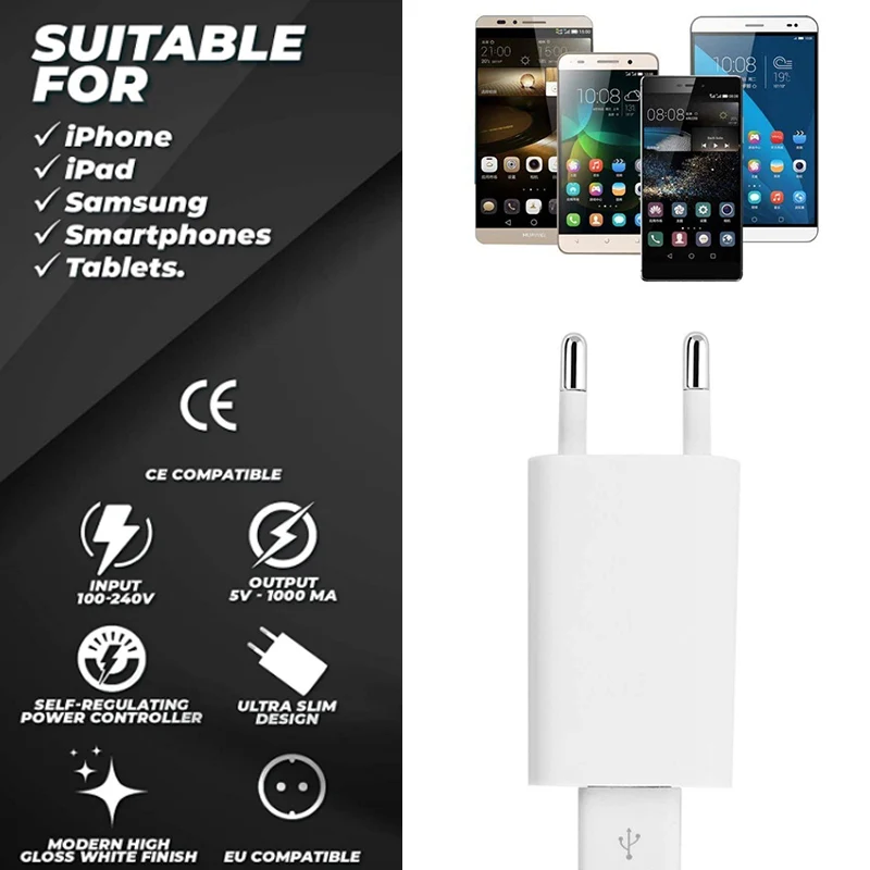 -Компактный и легкий дизайн -- Автоматический Регулируемый вход 100-240 В подходит для путешественников по всему миру в большинстве стран -Сопряжение с usb-кабелем для зарядки вашего мобильного телефона дома, в офисе или в путешествиях --- Головка зарядного устройства с одним портом USB с высококачественными материалами и сертификатом CE, FCC, RoHs, которые обеспечивают зарядную коробку от перезарядки, перенапряжения, перенапряжения и короткого замыкания. Защитите безопасность вас и ваших устройств.