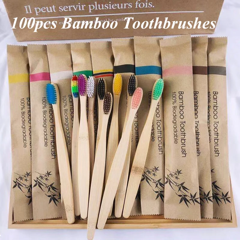 Зубные щетки для взрослых, бамбуковые, 100, 5102050зубная щетка с мягкой щетиной шт., с деревянной ручкой, экологически чистые зубы, отбеливающая щетка Здоровье полости рта