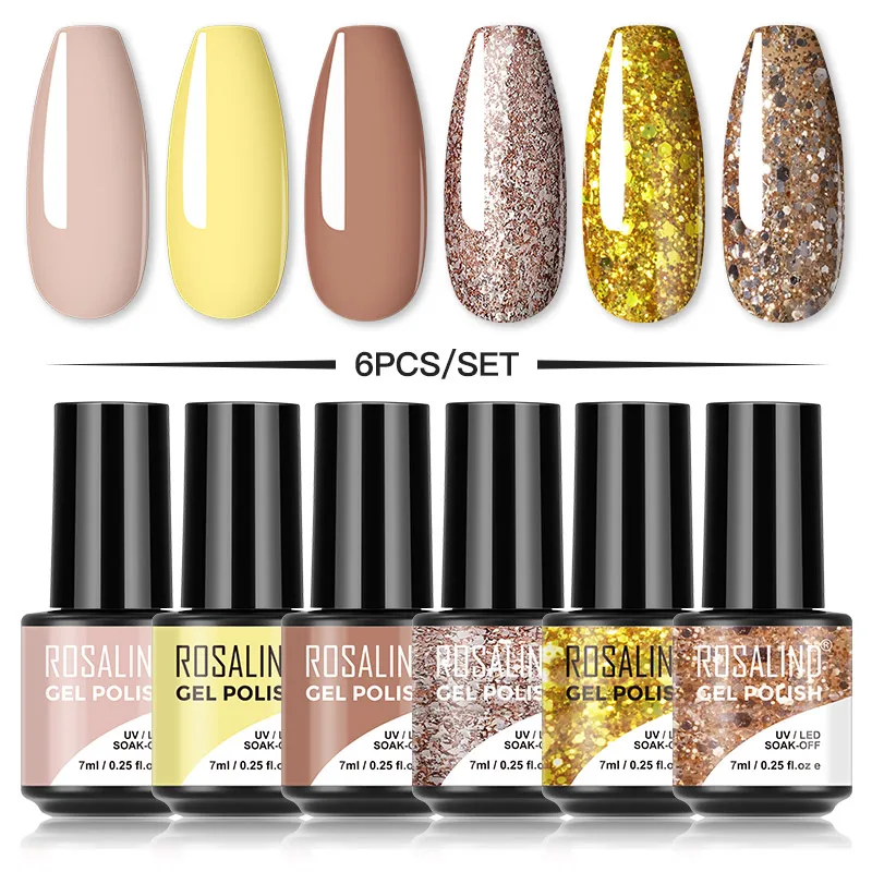 Розалинд 4/6 шт набор гелевых лаков для маникюра био-Гели Soak Off УФ лампа гибридные Лаки Комплект Базовый Топ, наклейки для ногтей гель лак для ногтей комплект Гель-лак для ногтей