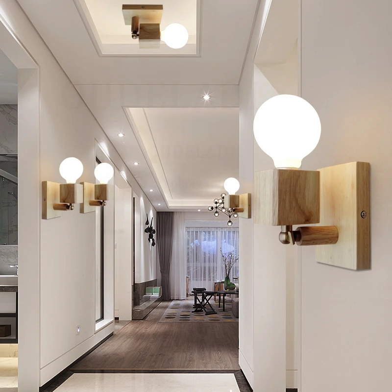 Современные японские Настенные светильники из массива дерева, креативные прикроватные светильники для гостиной, спальни, балкона