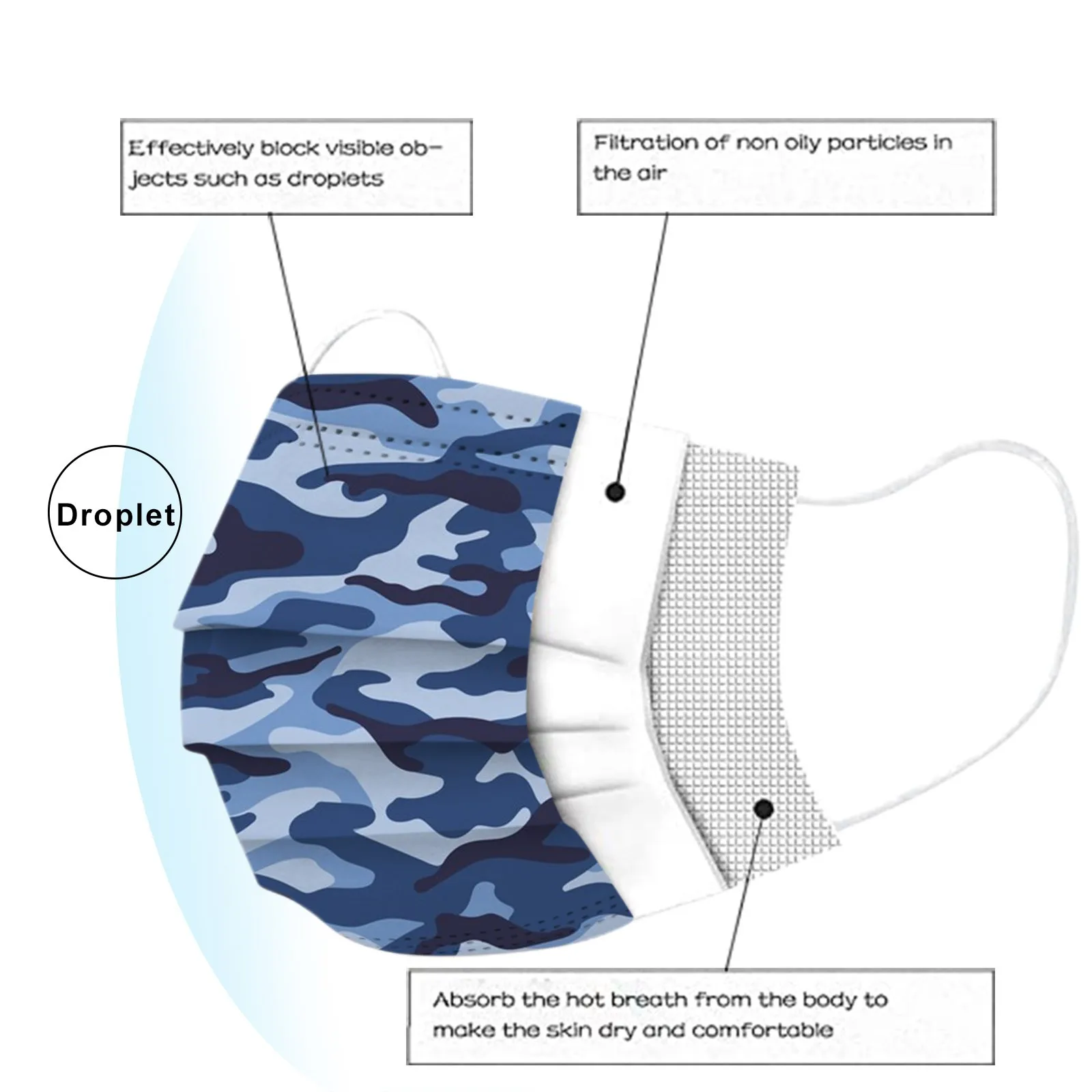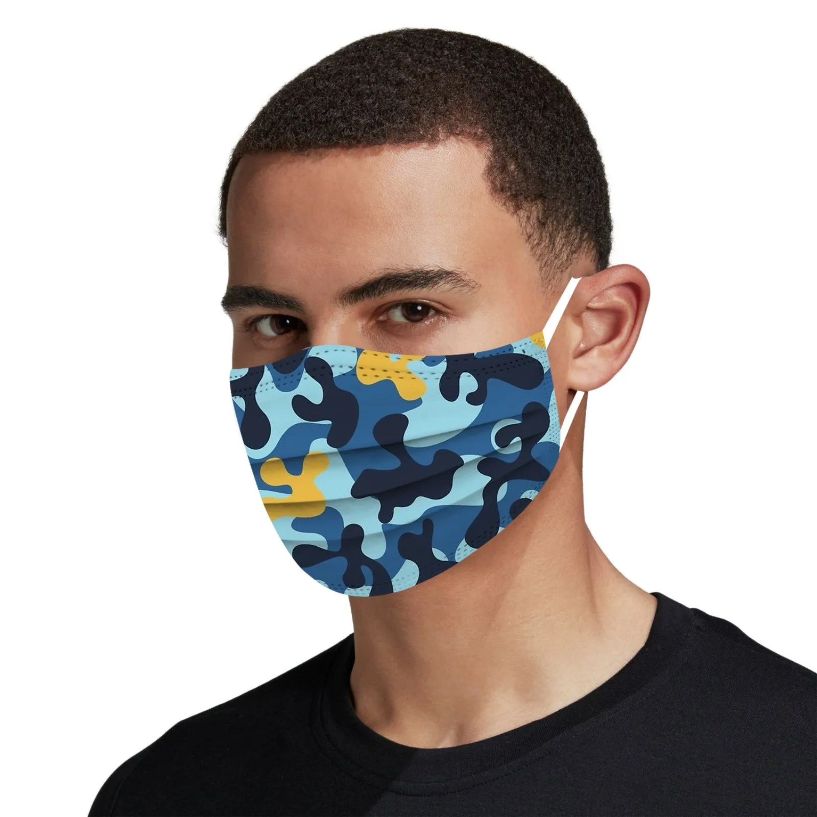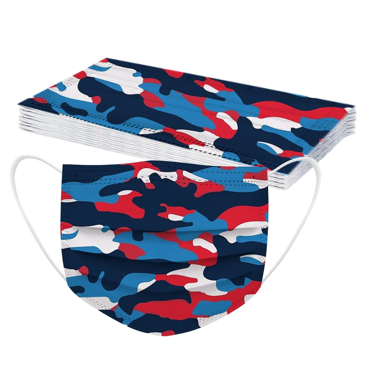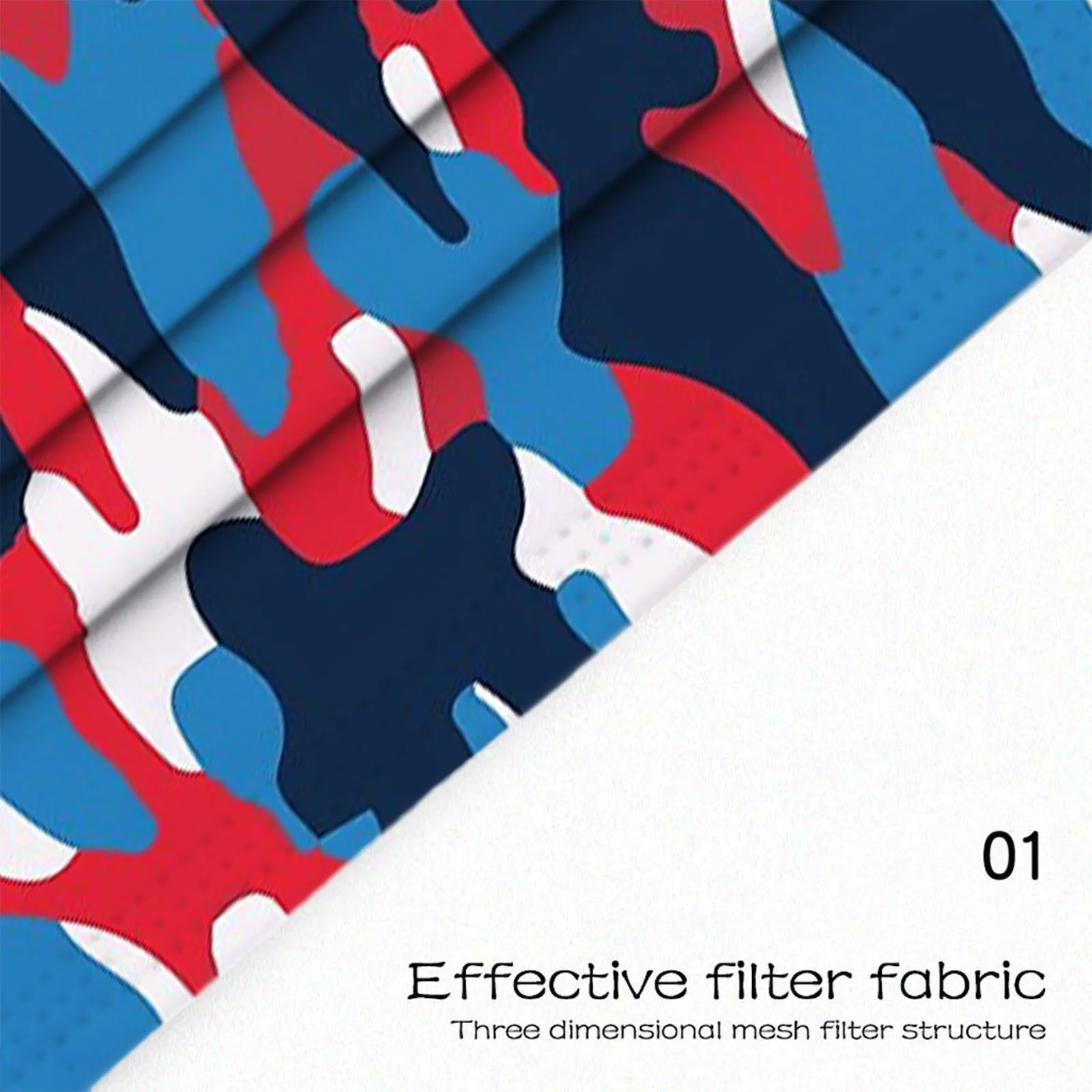 Маска для лица Одноразовая, 3 слоя, с камуфляжным принтом, разные цвета, 50 шт.