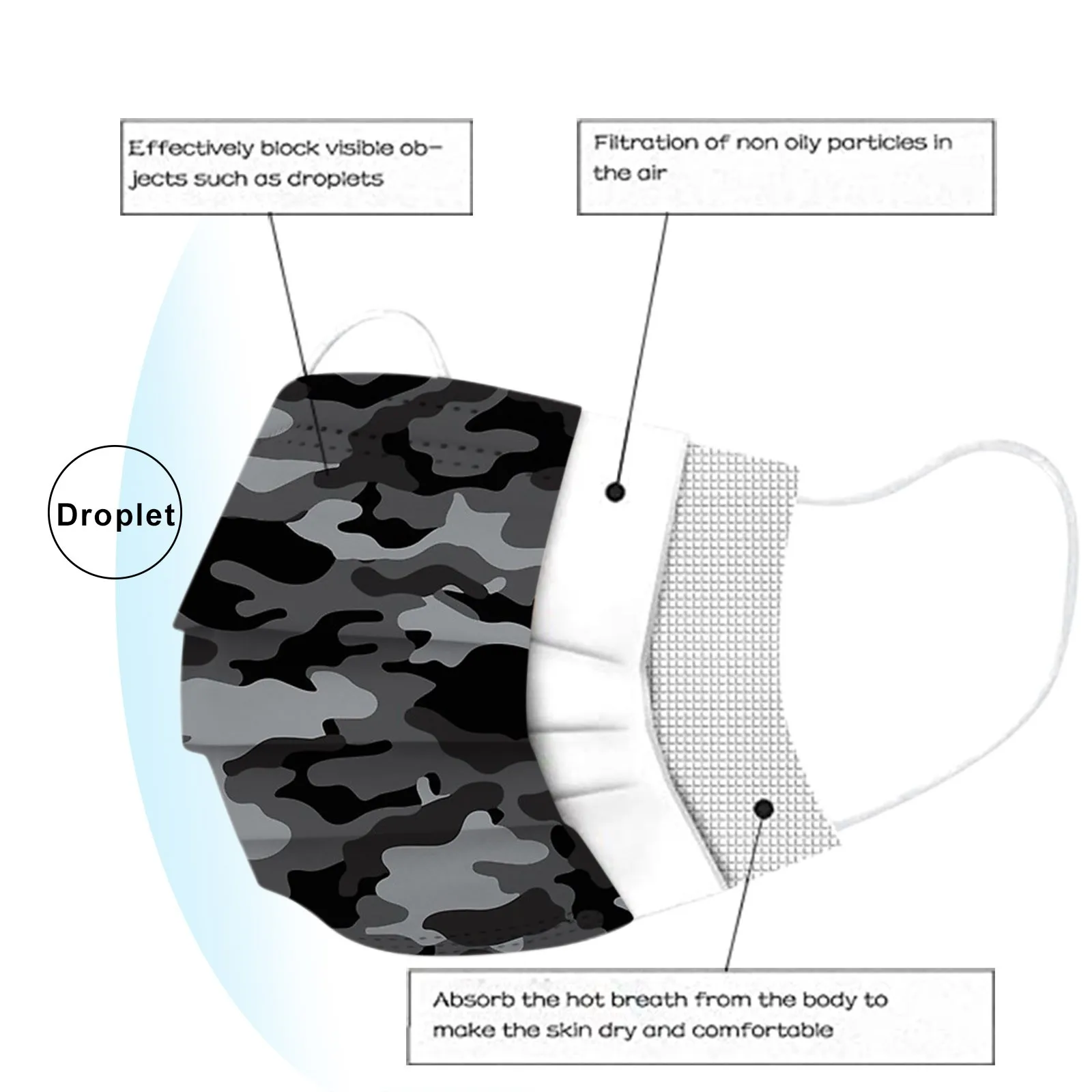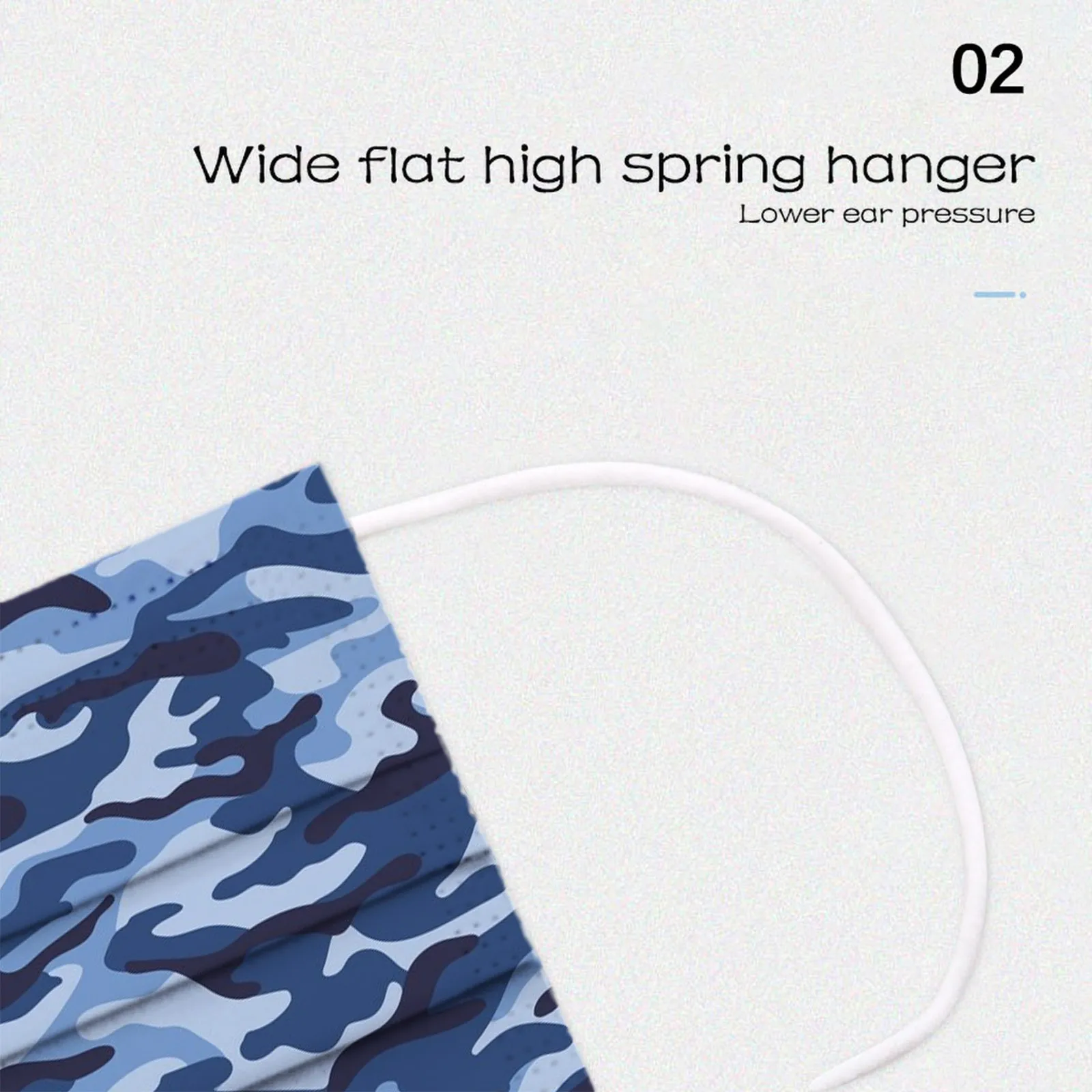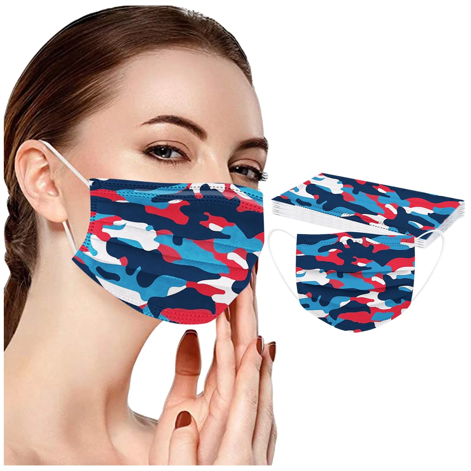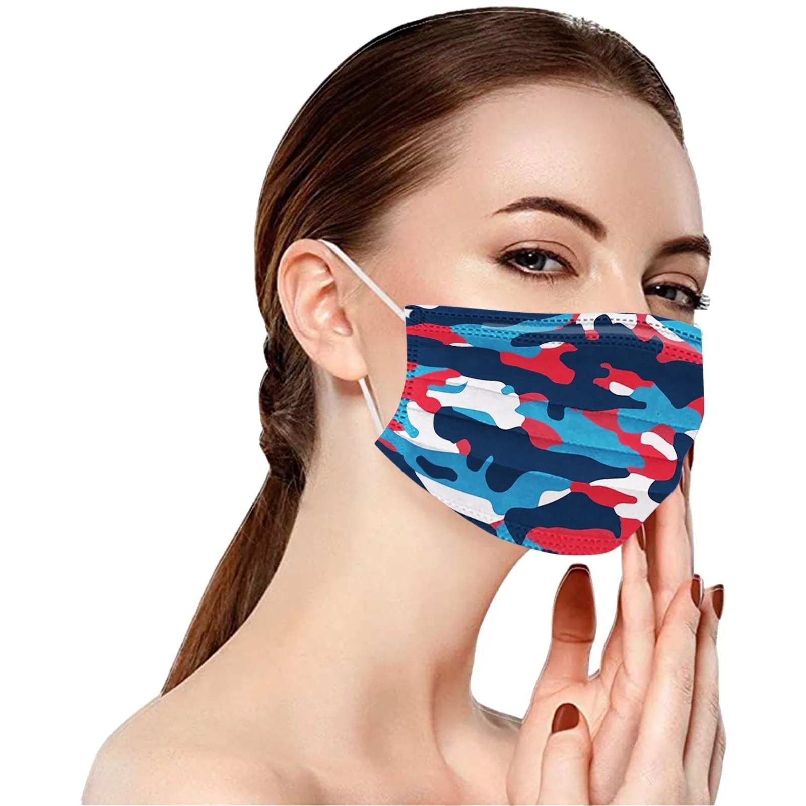 Маска для лица Одноразовая, 3 слоя, с камуфляжным принтом, разные цвета, 50 шт.
