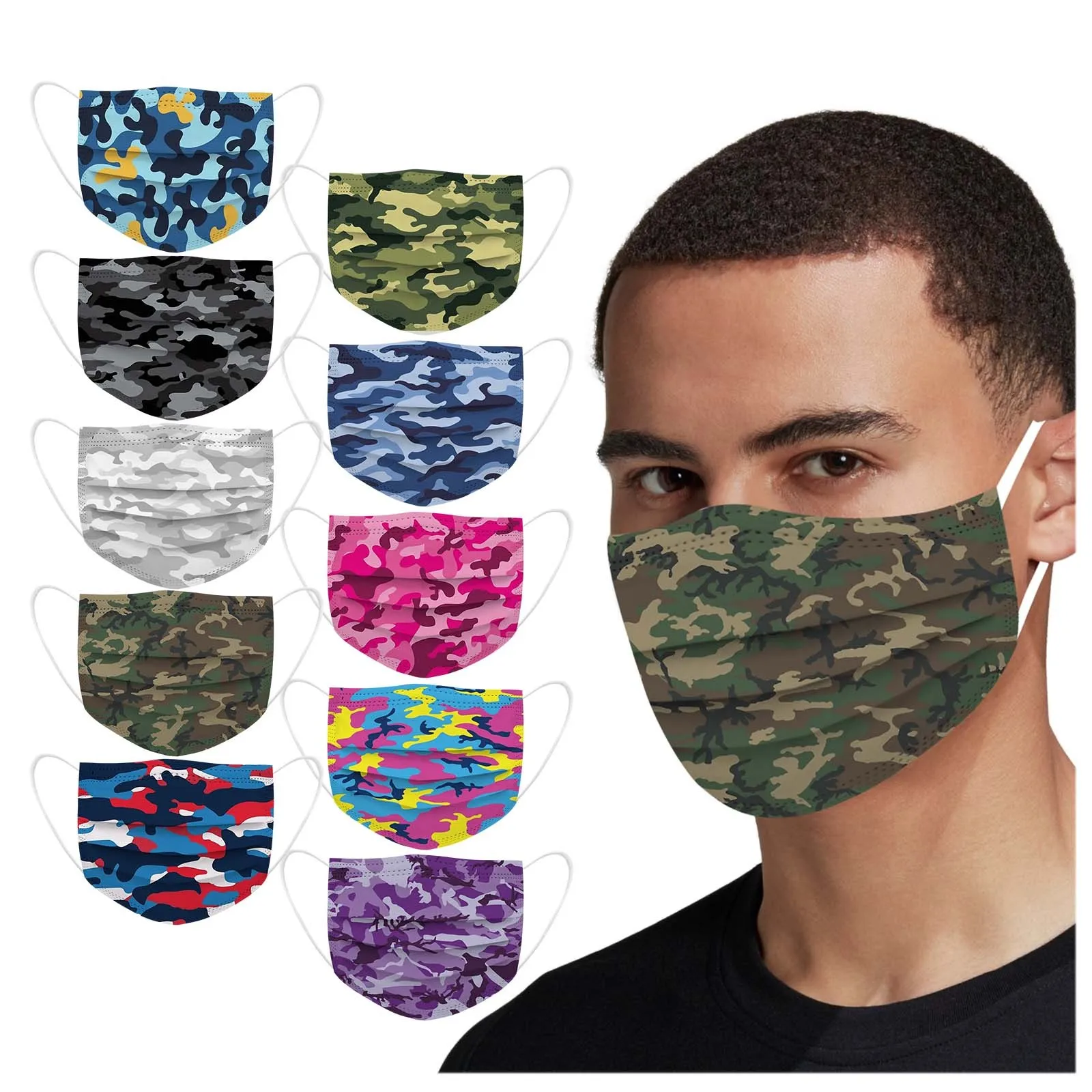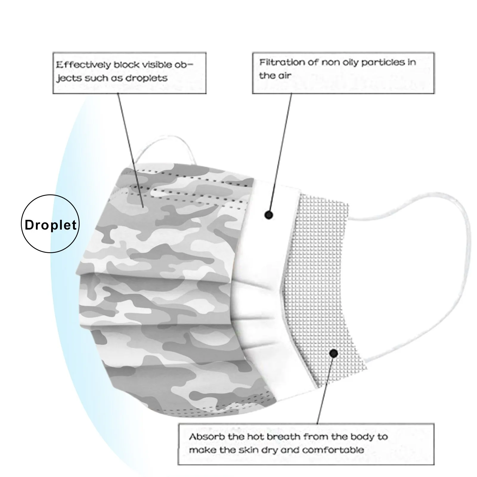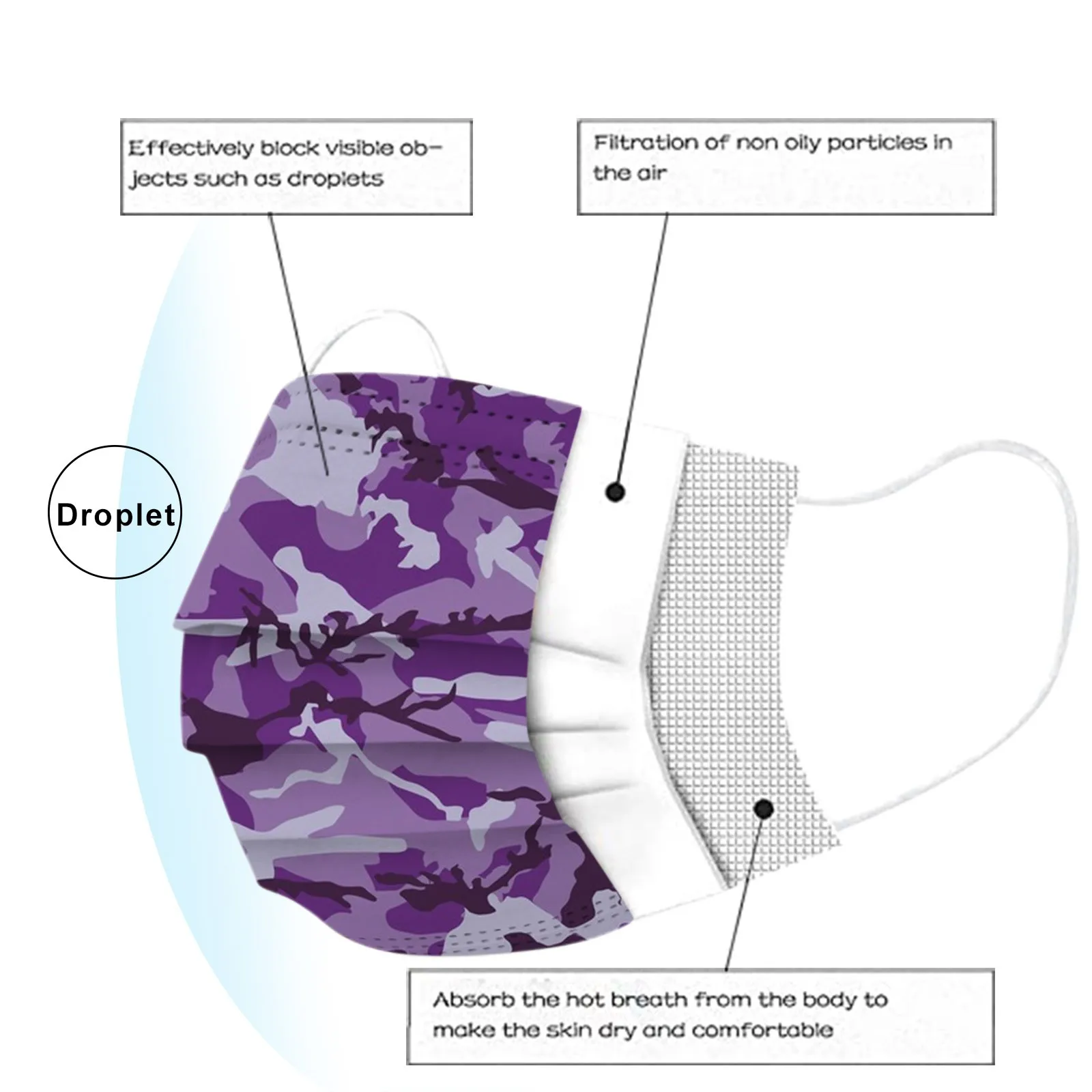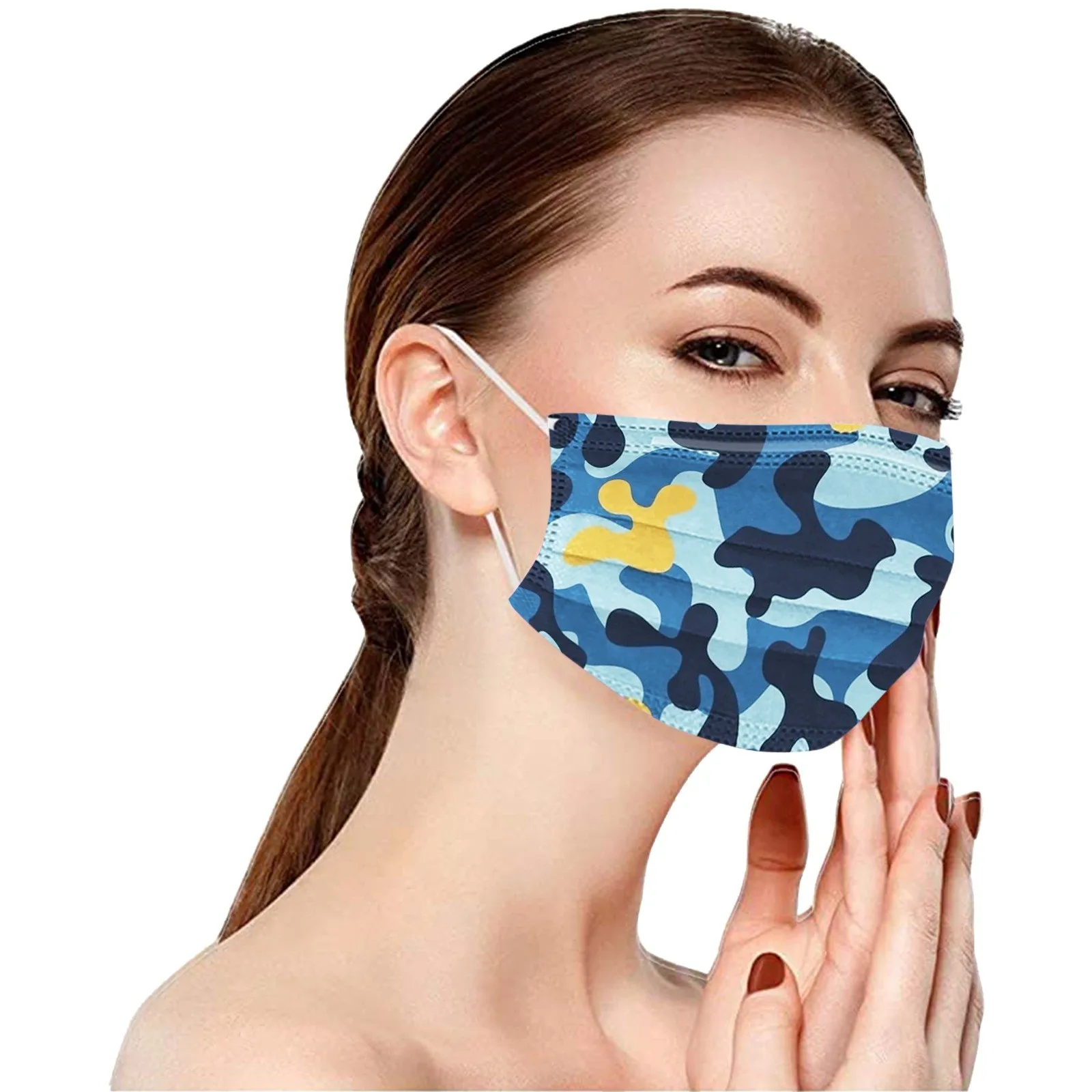Маска для лица Одноразовая, 3 слоя, с камуфляжным принтом, разные цвета, 50 шт.