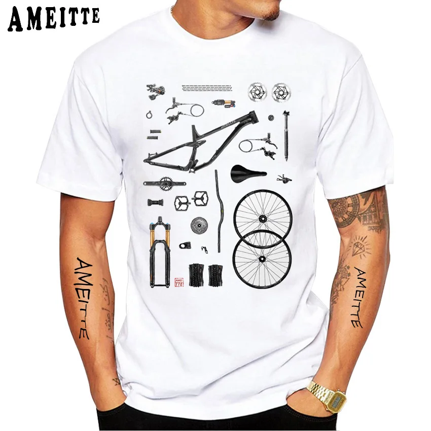 Футболка мужская с фиксированным механизмом, Классическая модная тенниска с принтом велосипедных ручек и чернил, забавный Повседневный Белый Топ с коротким рукавом для мальчиков, на лето