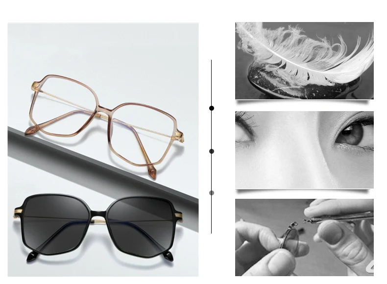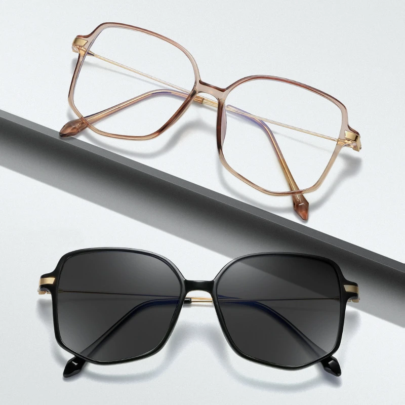 Это фотохромные очки по рецепту для близорукости, линзы будут прозрачными и бесцветными в помещении или в темных местах, но они изменят цвет на улице или на солнце, чтобы защитить ваши глаза от сильного светильник.