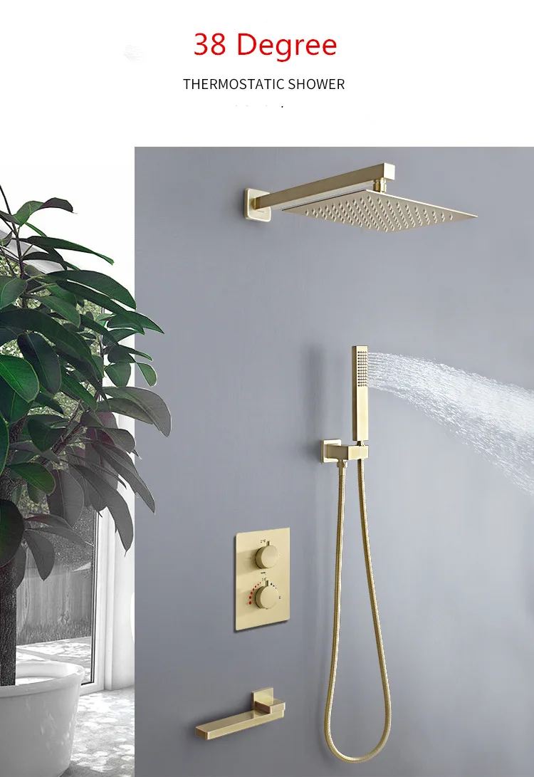 Термостатический смеситель для душа для ванной комнаты, Матовый Золотой смеситель для ванны и душа, набор Термостатический смеситель для ванны и дождевого душа