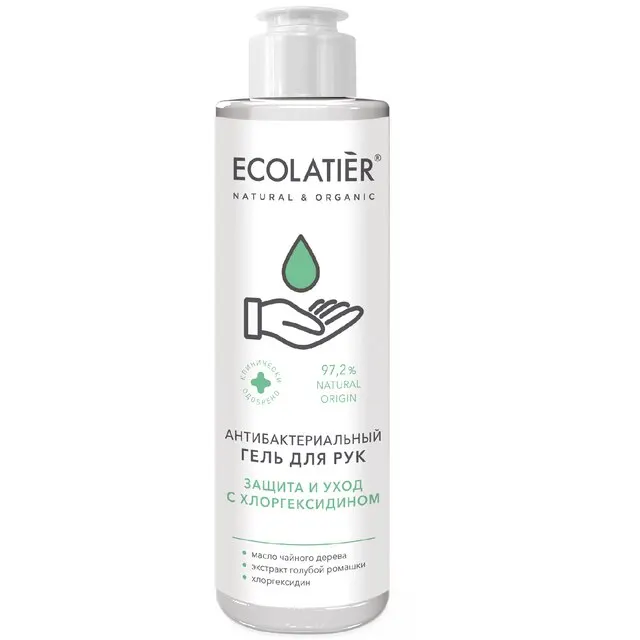 Гель для рук «Антибактериальный» с хлоргексидином обеспечит чистоту рук и защиту от бактерий, микробов и вирусов. Идеален для использования в ситуациях, когда нет возможности помыть и продезинфицировать руки. Без спирта и парабенов. Не сушит кожу и не оставляет ощущение липкости после полного впитывания. Хлоргексидин - антибактериальный компонент, антисептик, проявляет высокую активность против опасных микроорганизмов на коже. Очищает и дезинфицирует кожу, не вызывая ее повреждения. Натуральное масло чайного дерева обладает антисептическими свойствами. Ферменты, витамины, аминокислоты в его составе обладают хорошей проникающей способностью и благотворно воздействуют на кожу, увлажняют ее. Экстракт ромашки голубой используют в средствах для ежедневного ухода за сухой и чувствительной кожей. Оказывает противовоспалительное действие, снимает покраснения, способствует заживлению повреждений на коже. Результат: Эффективное очищение и увлажнение кожи рук; активная защита от микробов и вирусов; бережный уход. Способ применения: нанести небольшое количество геля на руки, растереть до полного высыхания. Состав: Aqua with infusion of: Chamomilla Recutita (Matricaria) Flower Extract (экстракт Ромашки), Vegetable Glycerin (растительного происхождения), Propylene Glycol, Chlorhexidine Di-Undecylenate, PEG-40 Hydrogenated Castor Oil, Phenoxyethanol, Ethylhexylglycerin, Melaleuca Alternifolia (Tea Tree) Leaf Oil (эфирное масло Чайного дерева), Acrylates/C10-30 Alkyl Acrylate Crosspolymer, Sodium Benzoate, Potassium Sorbate, Sodium Hydroxide.